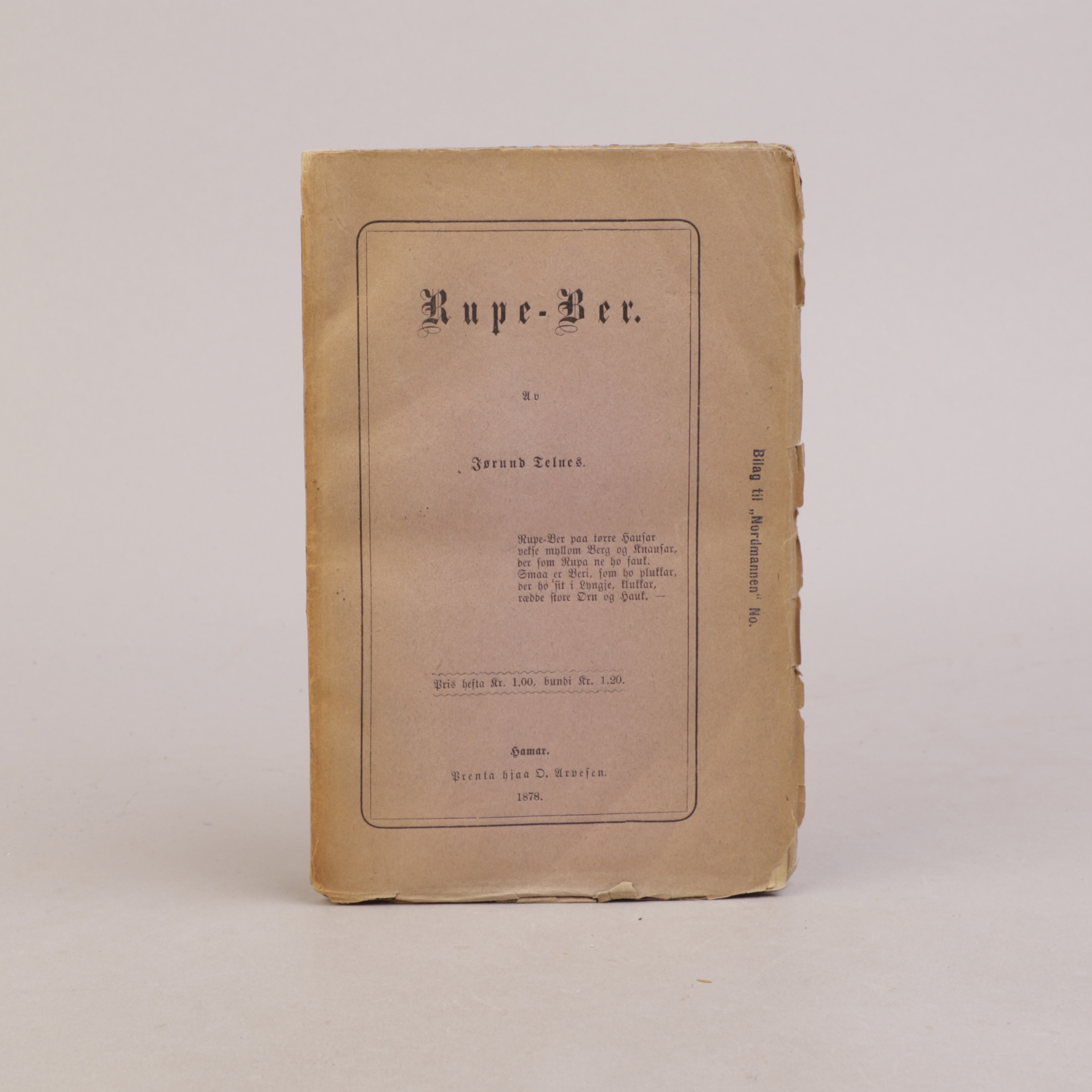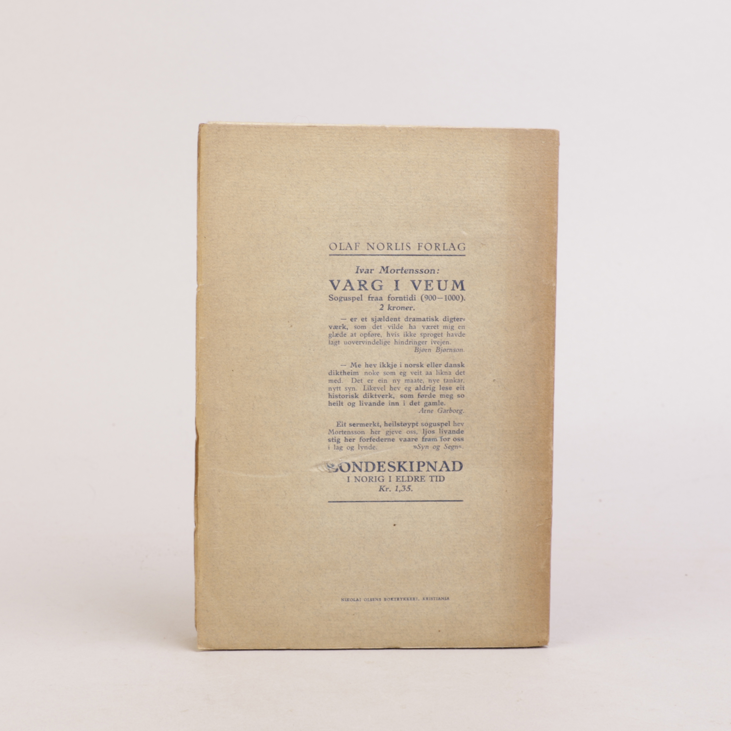 Originalt kombinert omslag med original ryggstripe. Uvanlig.