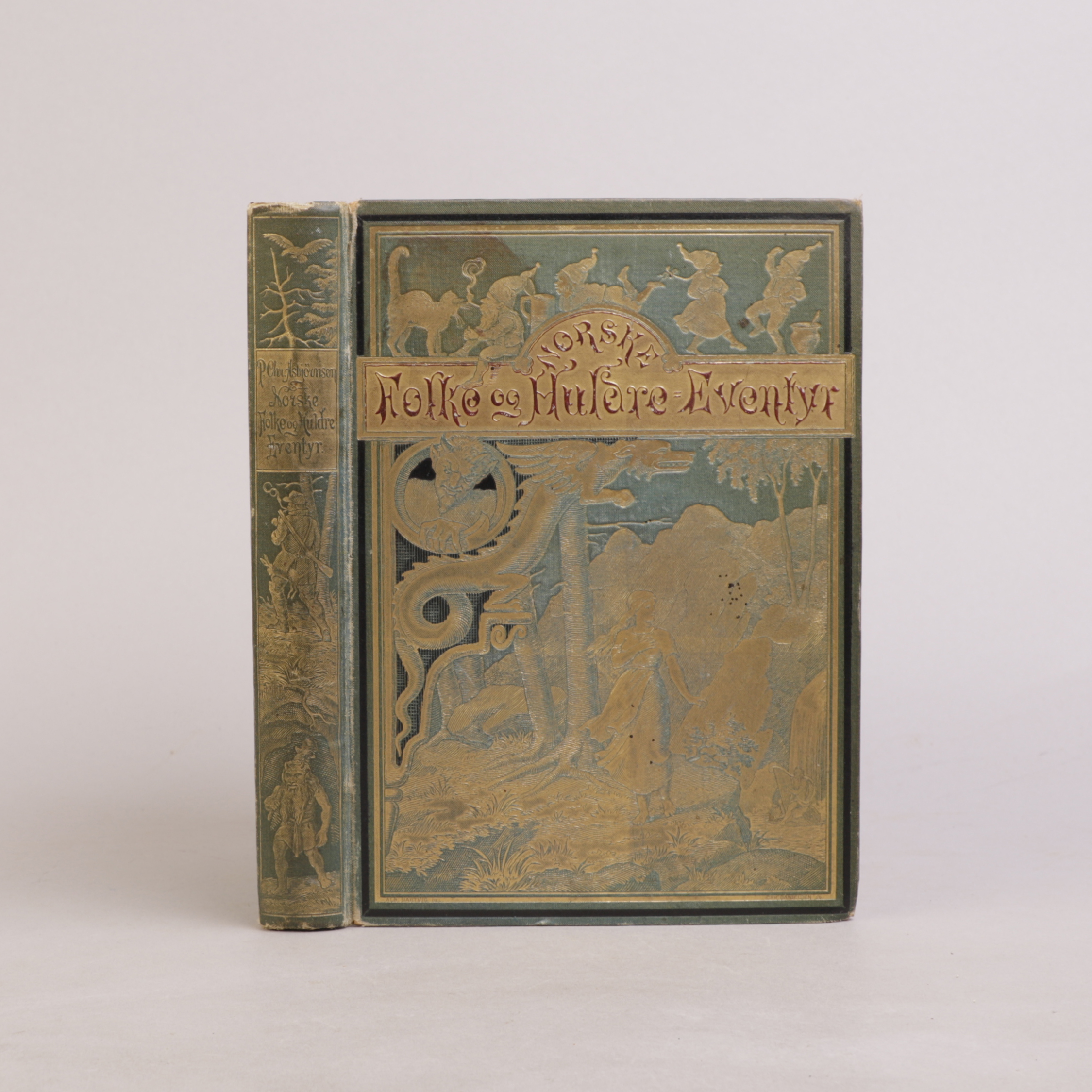 Forlagets dekorerte helsjirtingbind, ”Huldrebindet”.
