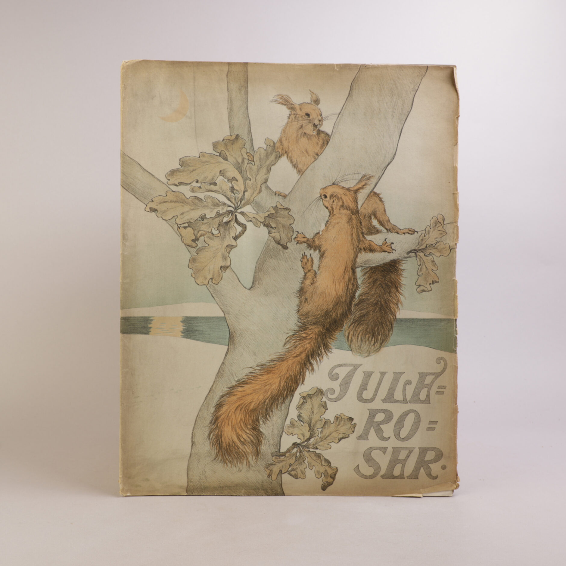 Vareomslaget med rifter langs fremre innbrett. Lukket rift. For øvrig et meget velholdt og vakkert julehefte som det glitrer av.