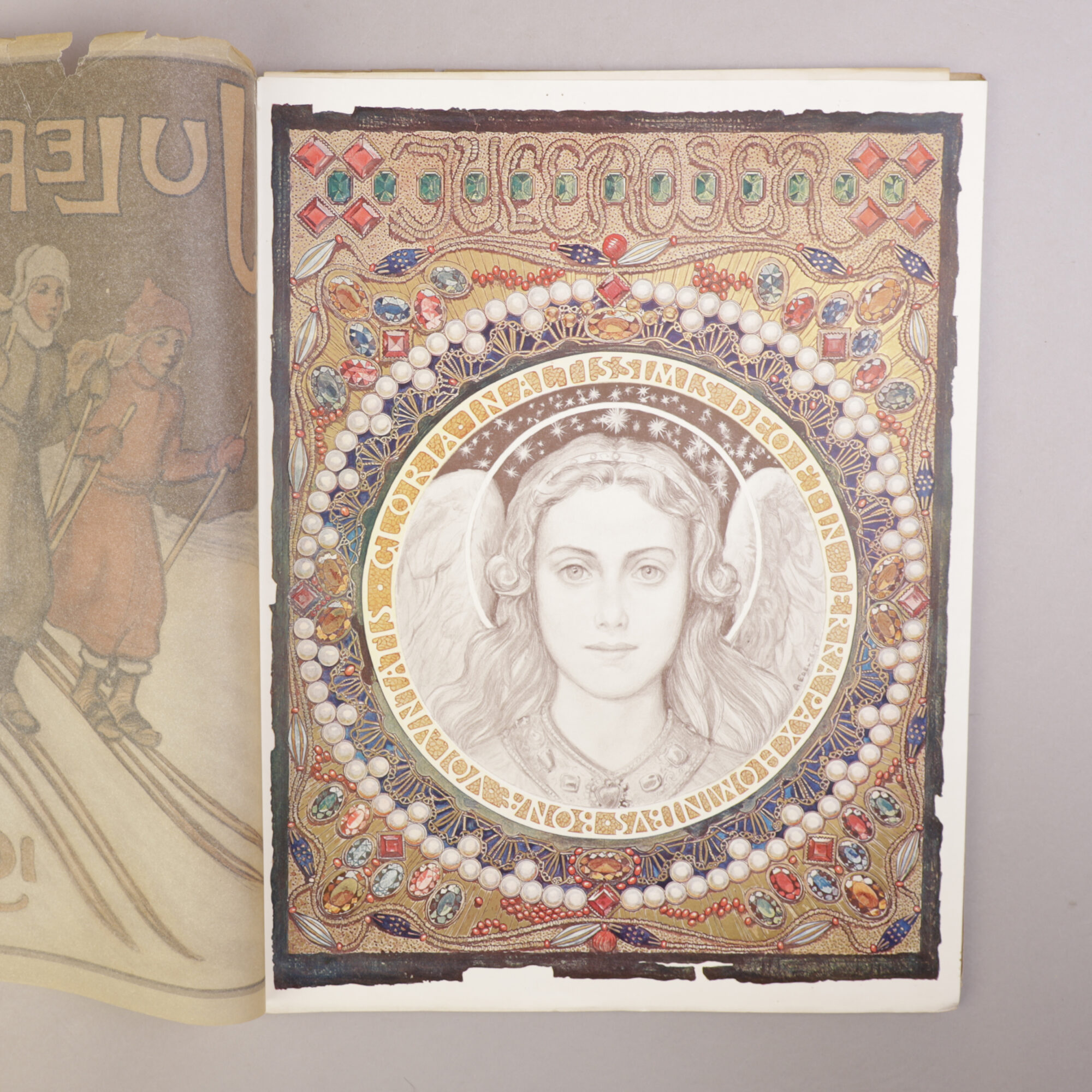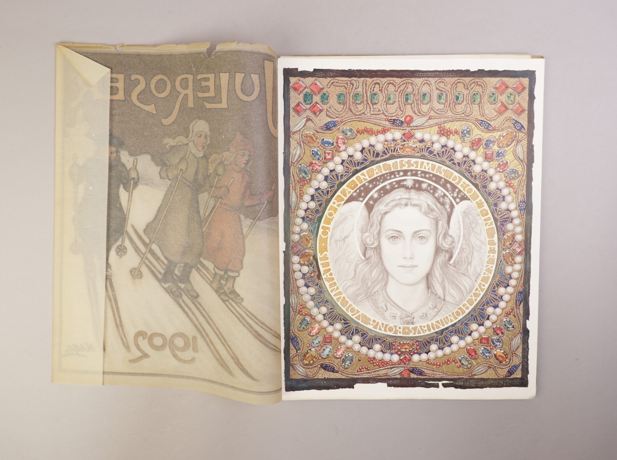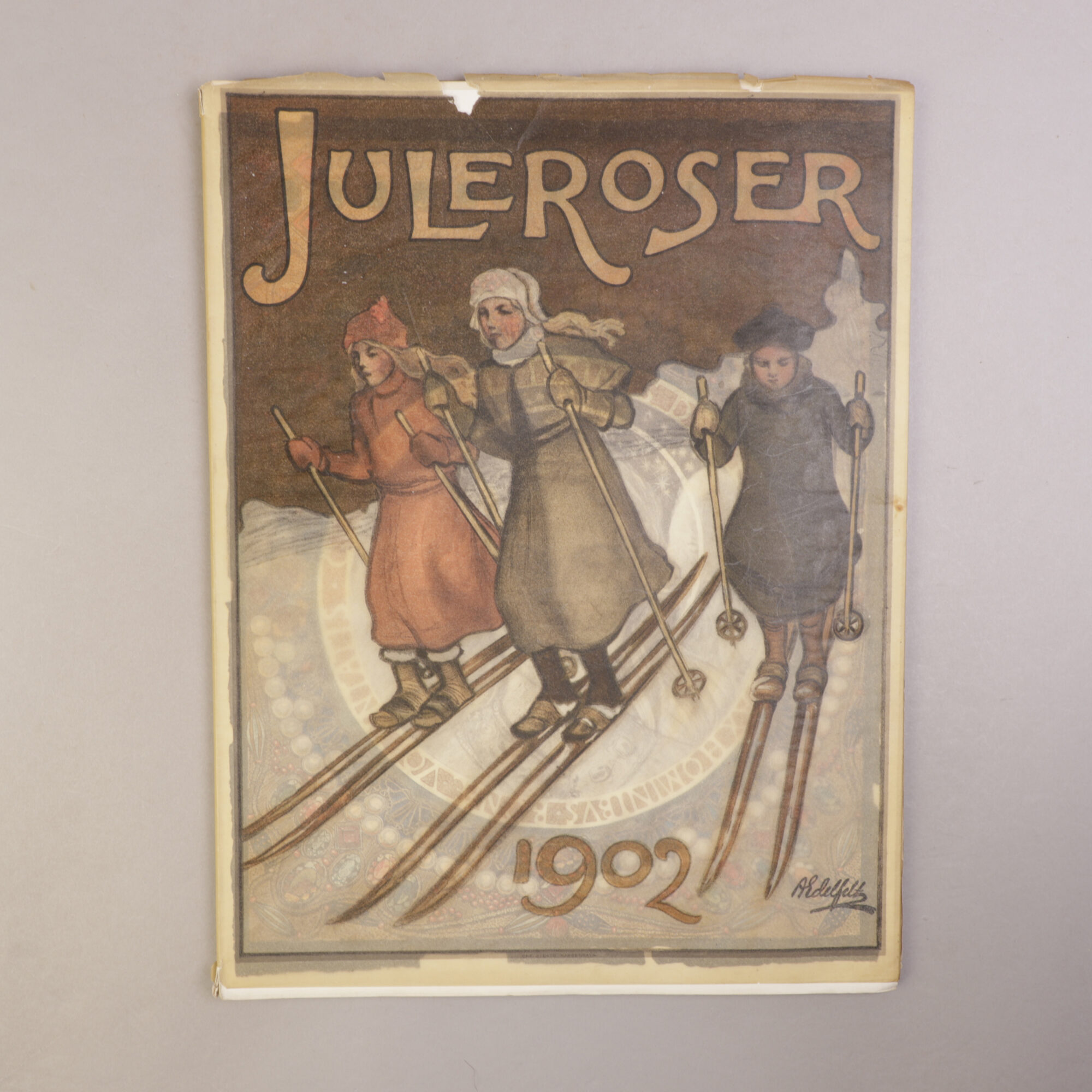 Vareomslaget med rifter langs kantene samt noe papirtap langs rygg og øvre fremre del. For øvrig et meget velholdt og vakkert julehefte som det glitrer av.