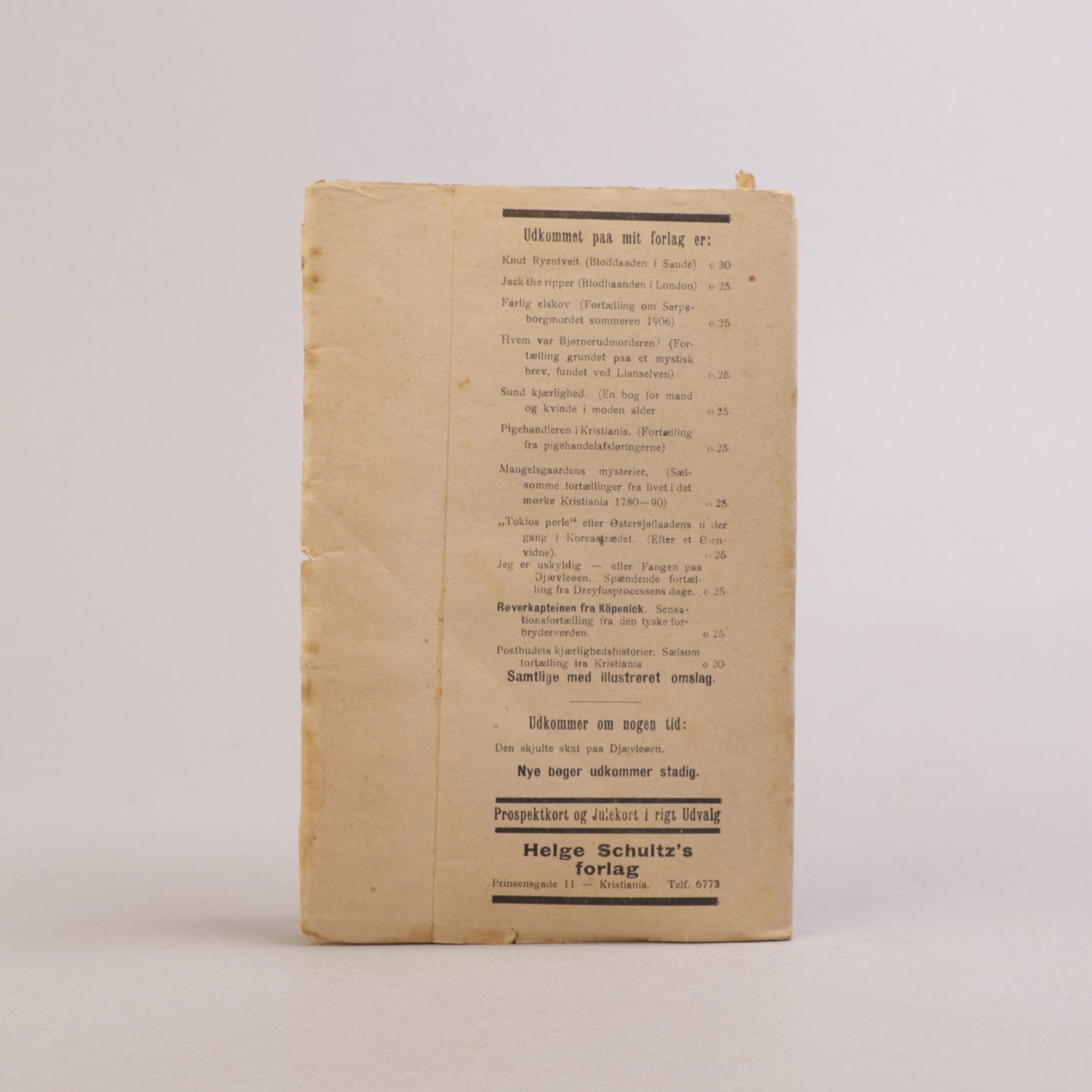 Kristiania: Helge Schultz, 1906. 31 sider. Originalt, lukket omslag, sprettet.