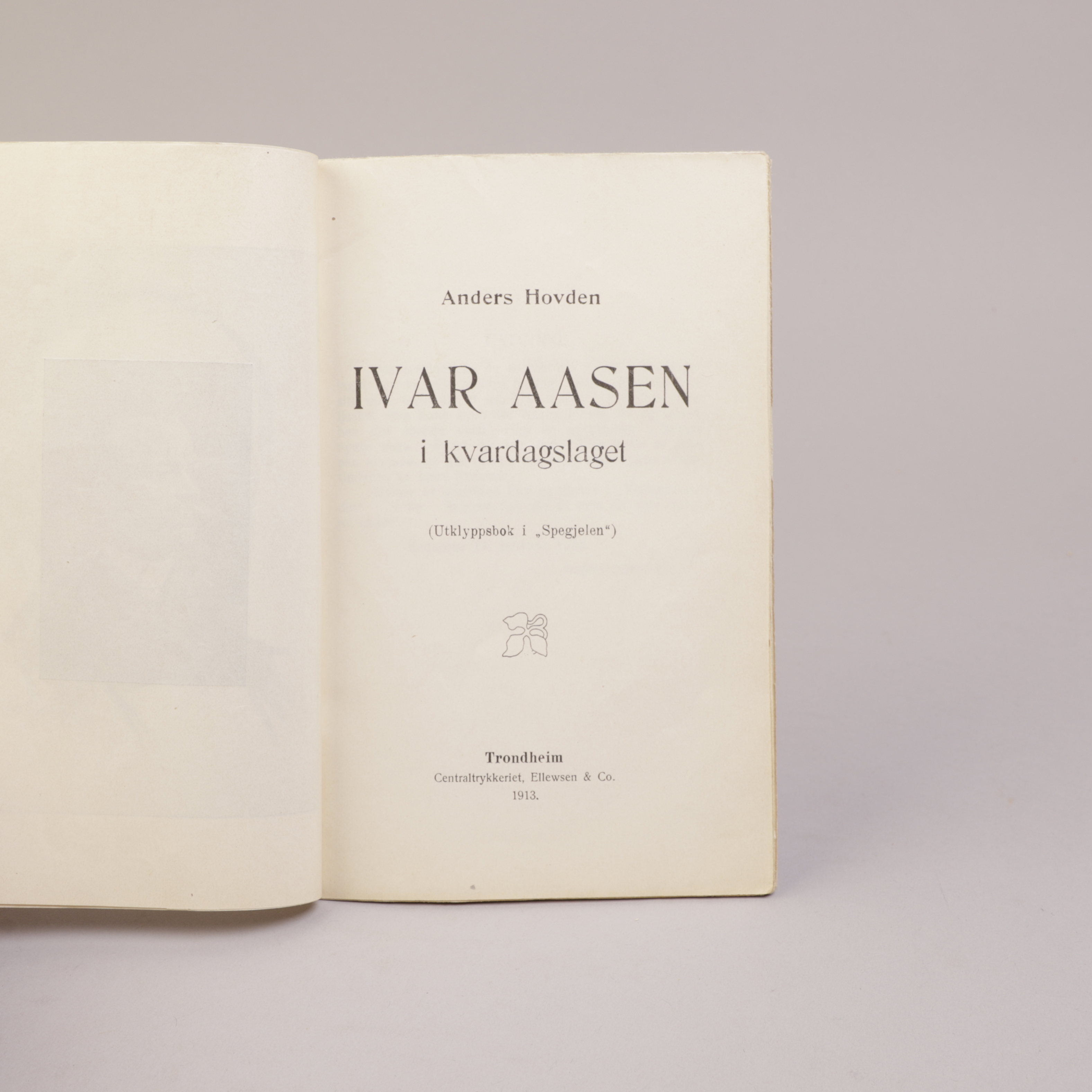 Trondheim: Ellewsen & Co., 1913. Utklyppsbok i ”Spegjelen”.