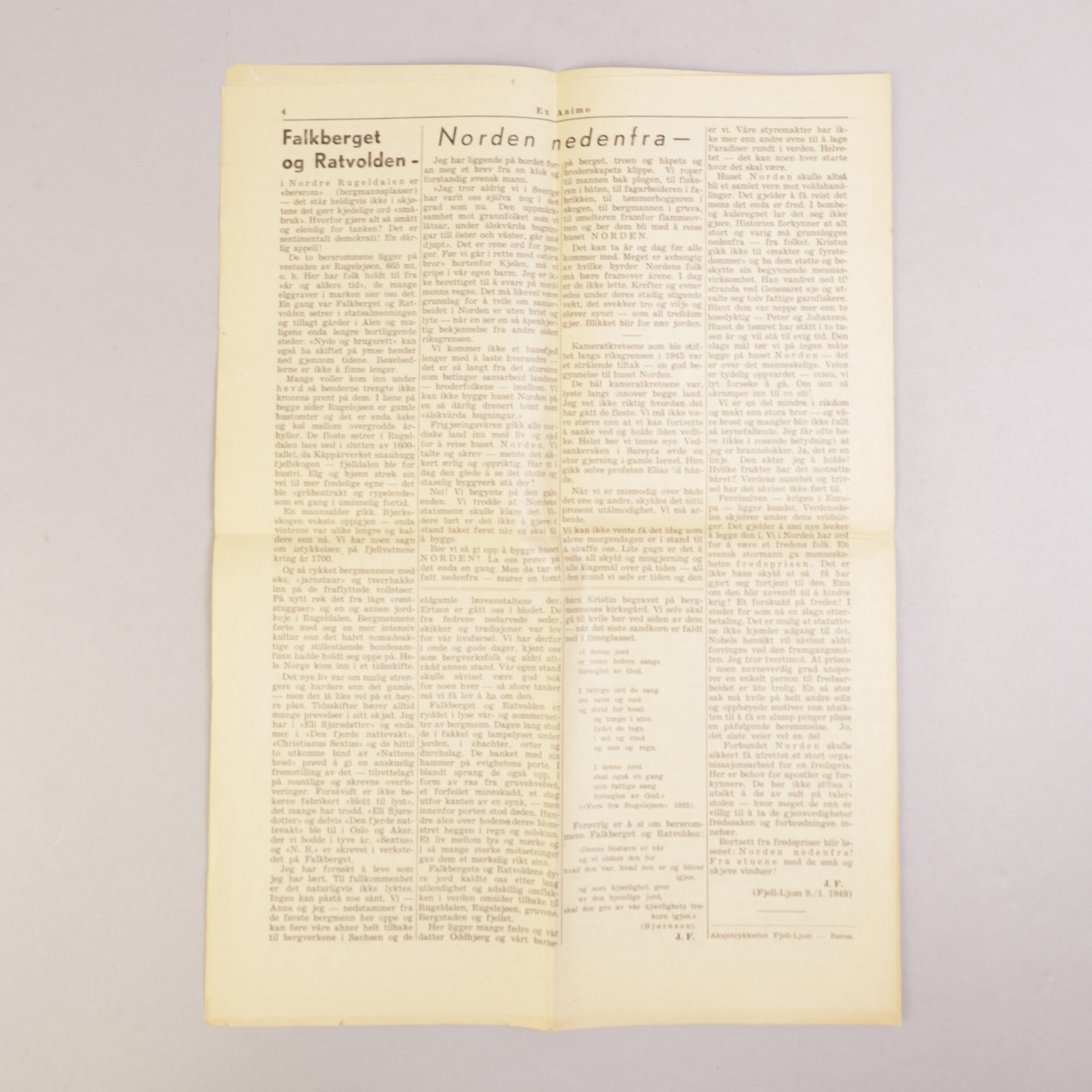 Takkeskrift utgitt av Falkberget i forbindelse med innsamlingsgaven i 1949. Dette året fikk Falkberget «Det norske folks nobelpris» (Hjertenes nobelpris), pålydende 165 000 kroner. Alt er skrevet av Falkberget.