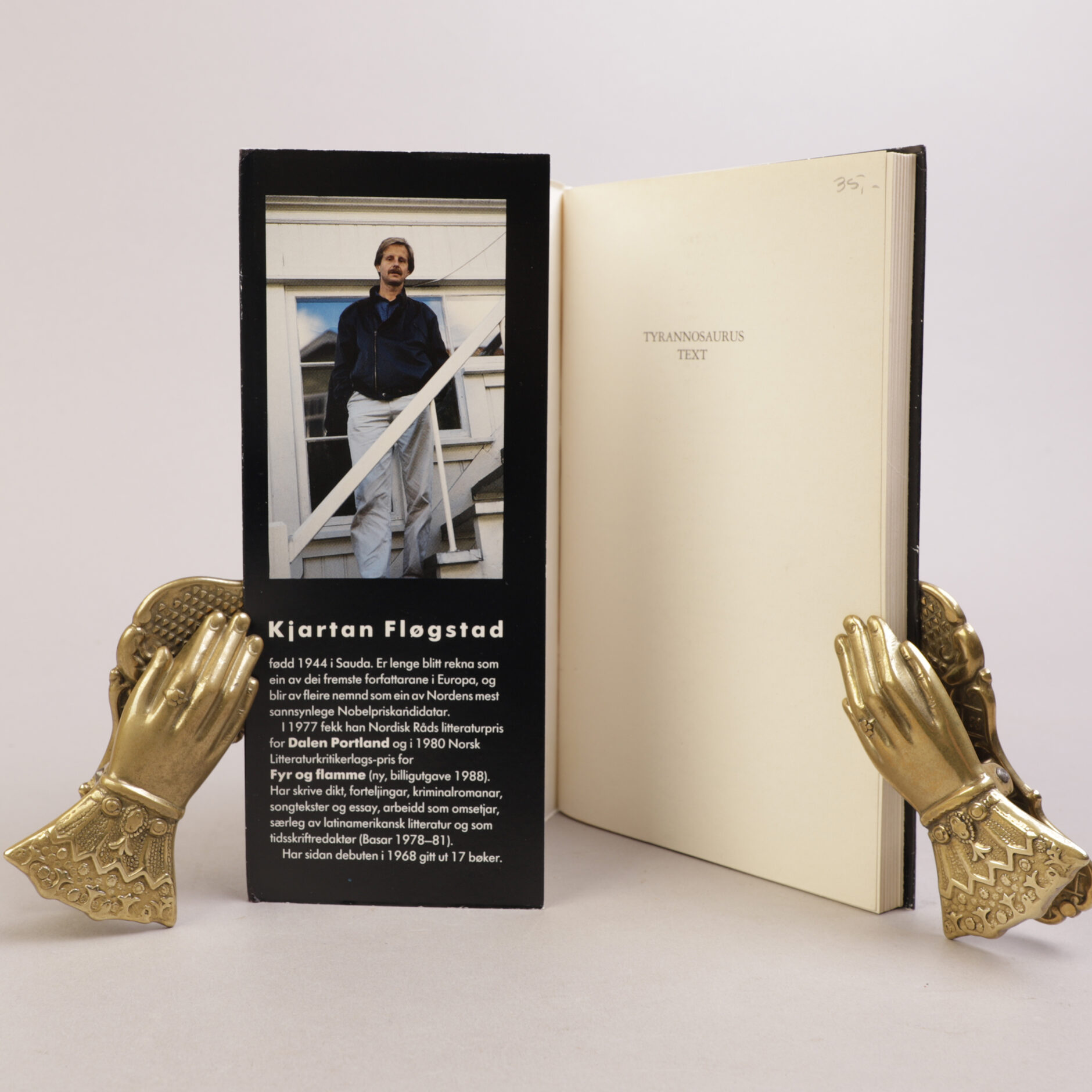 Uhyre sjelden supprimert utgave. Samlaget hadde først trykt en omtale av Fløgstad på klaffen til omslaget, hvor Fløgstad var fremhevet som en nobelpris-kandidat. Denne utgivelsen stanset Fløgstad, men noen meget få slapp unna «beslaget». Utgaven utkom med klaffene skåret bort. Dette kan på noen eksemplarer skimtes da beskjæringen kan være noe unøyaktig.
