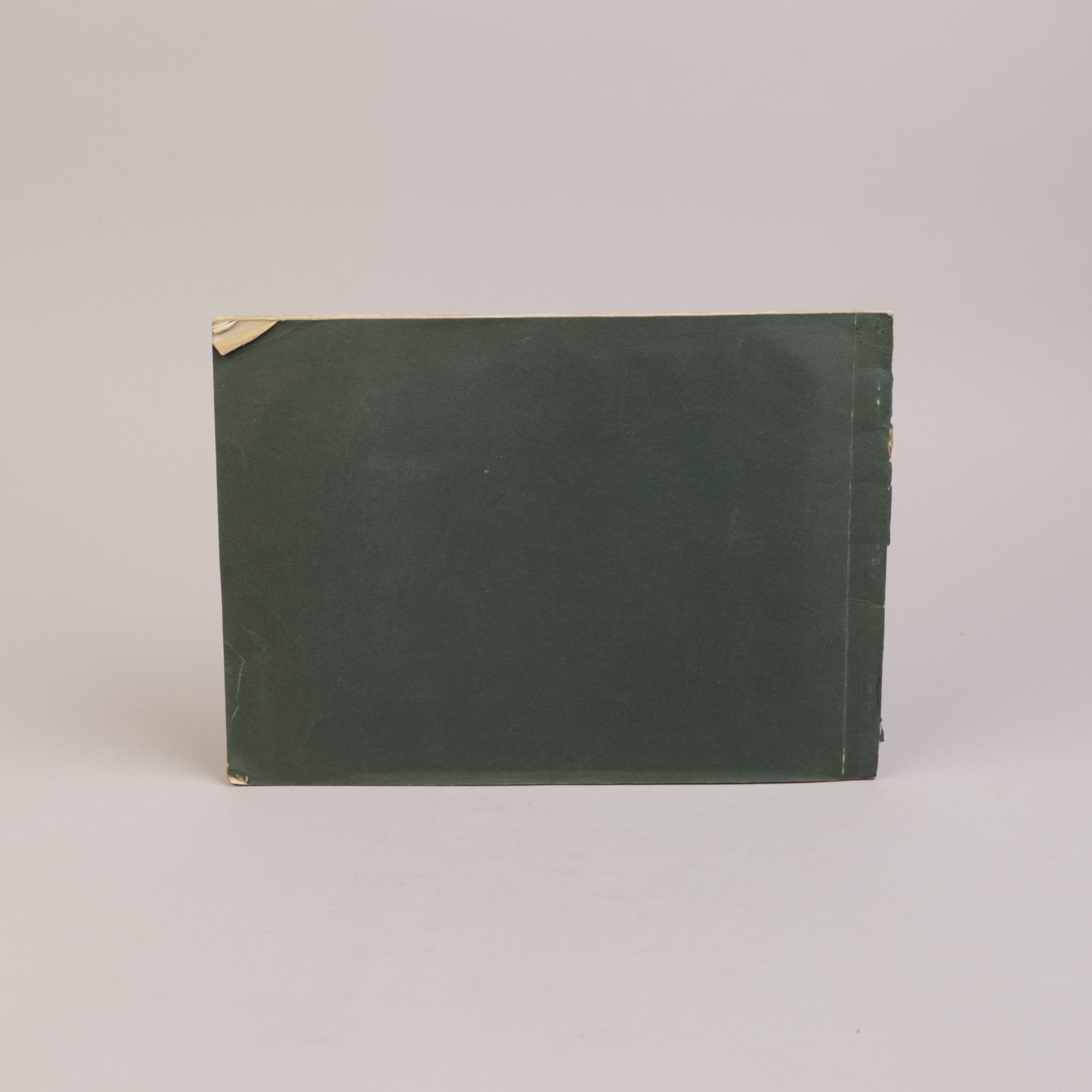 Rifter på ryggstripen, dog fast. Noe bretter i hjørner, svak fuktrand i øvre kant av materien.
