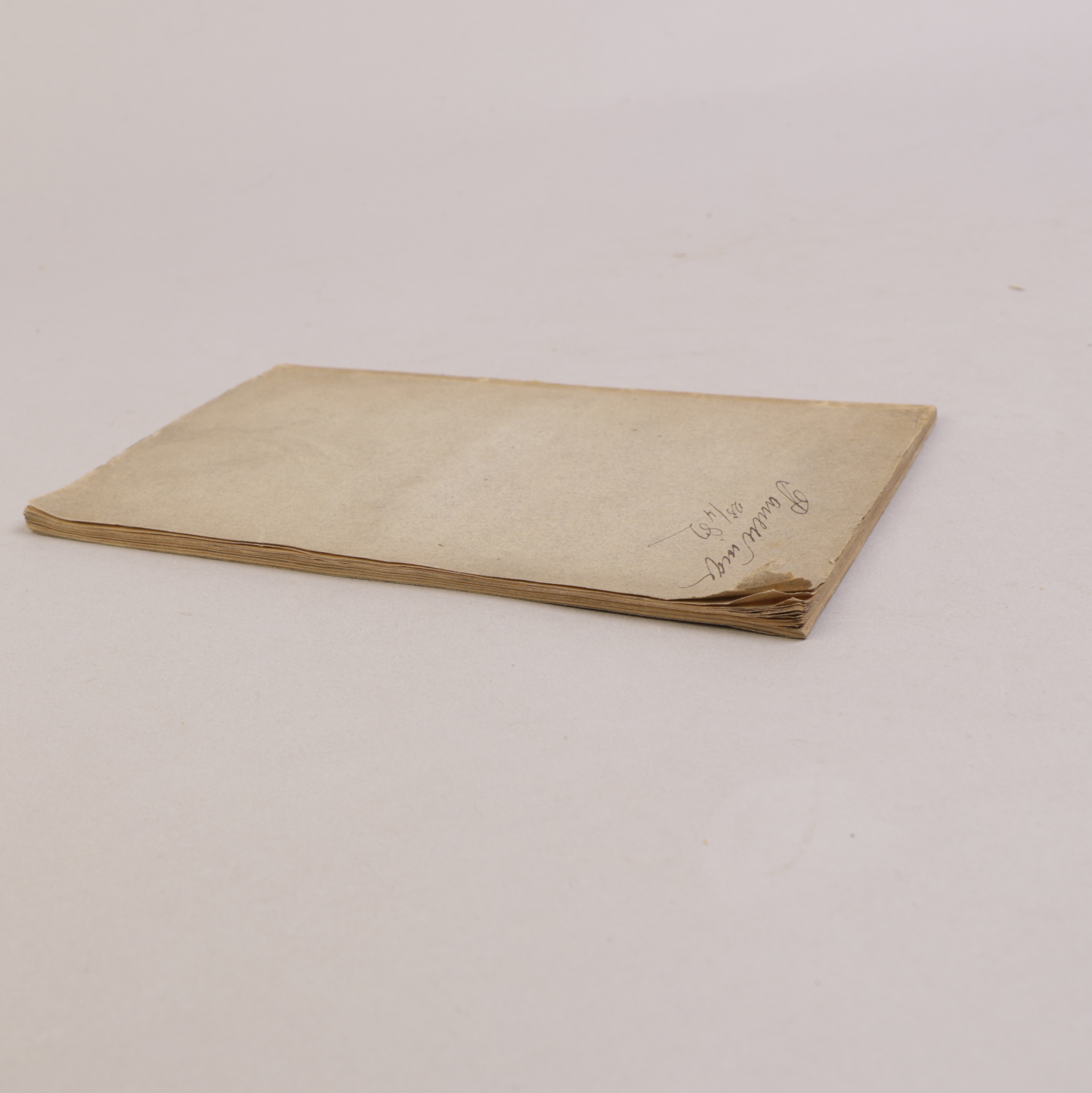 Liten brett i øvre hjørne av fremre omslag, påvirker materiens første del, dog lite fremtredende. Meget liten slitasje i nedre snitt mot nedre hjørne. Navnetrekk på fremre omslag.