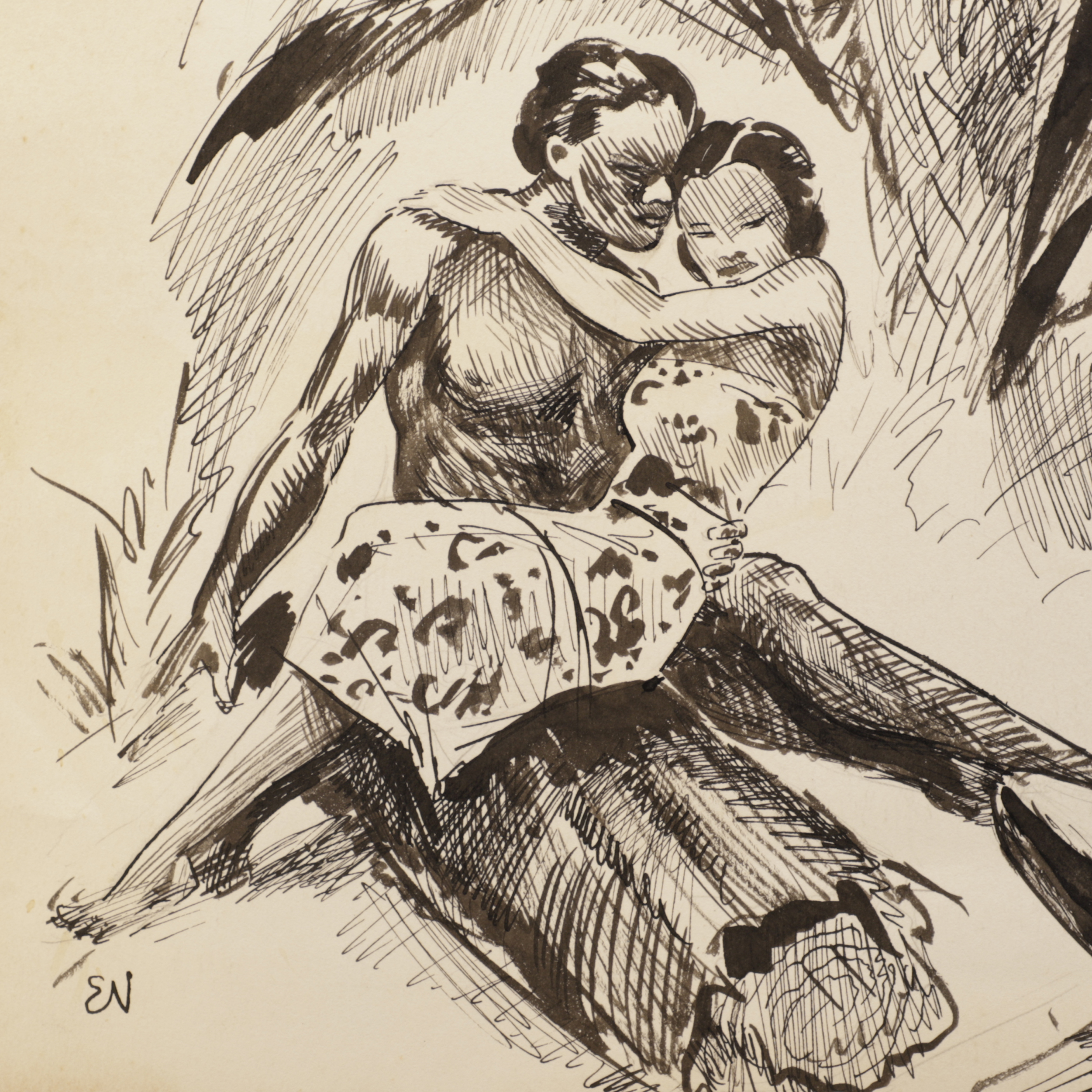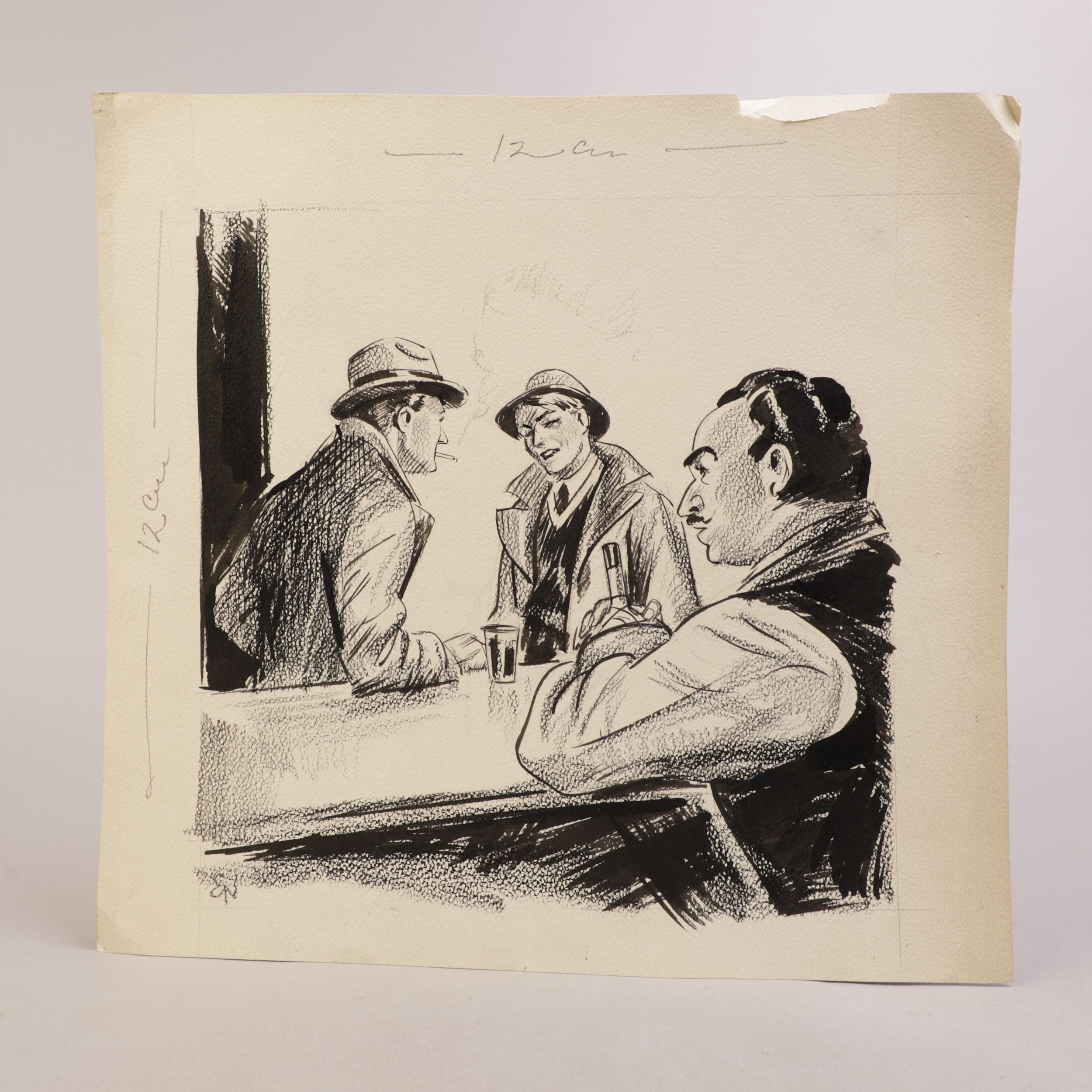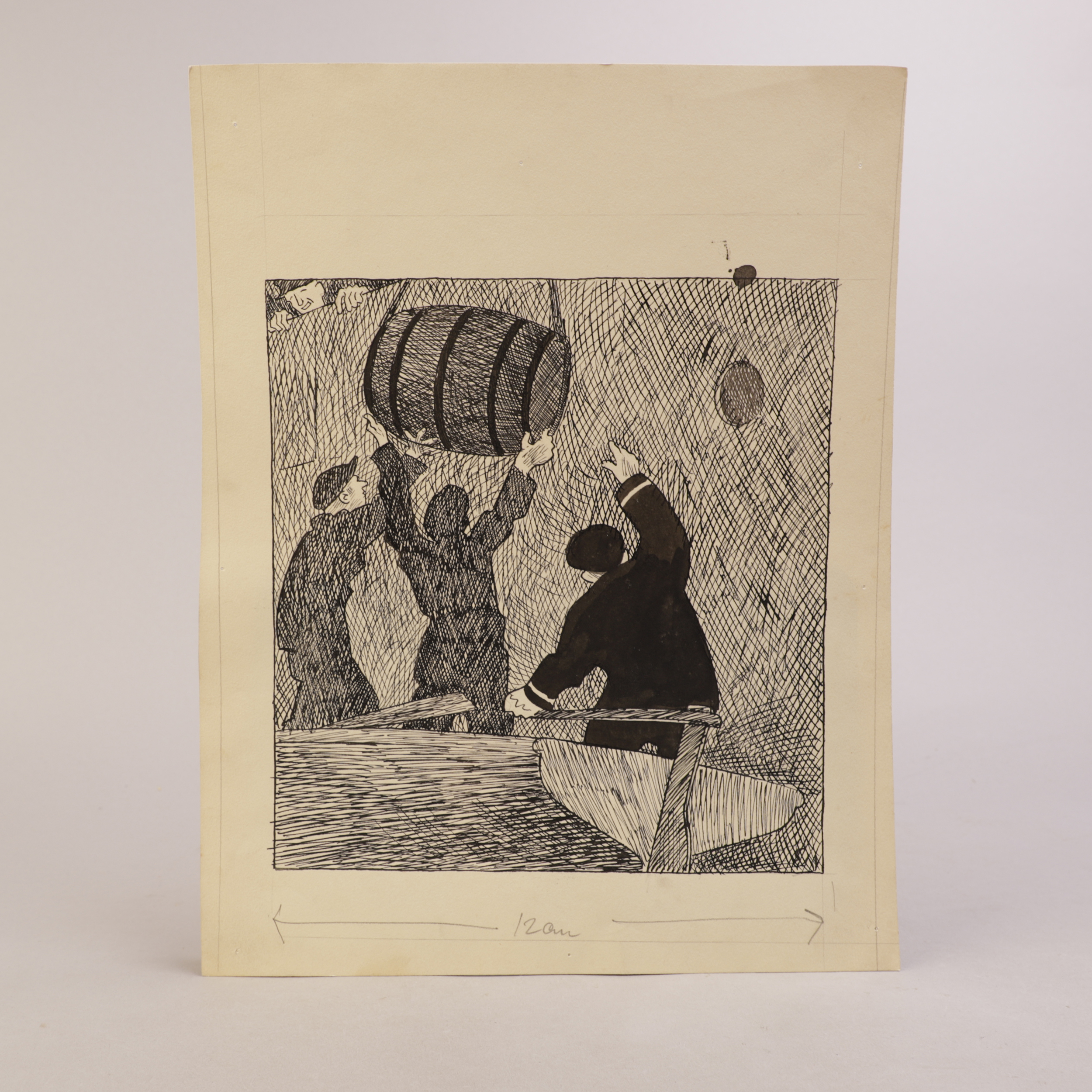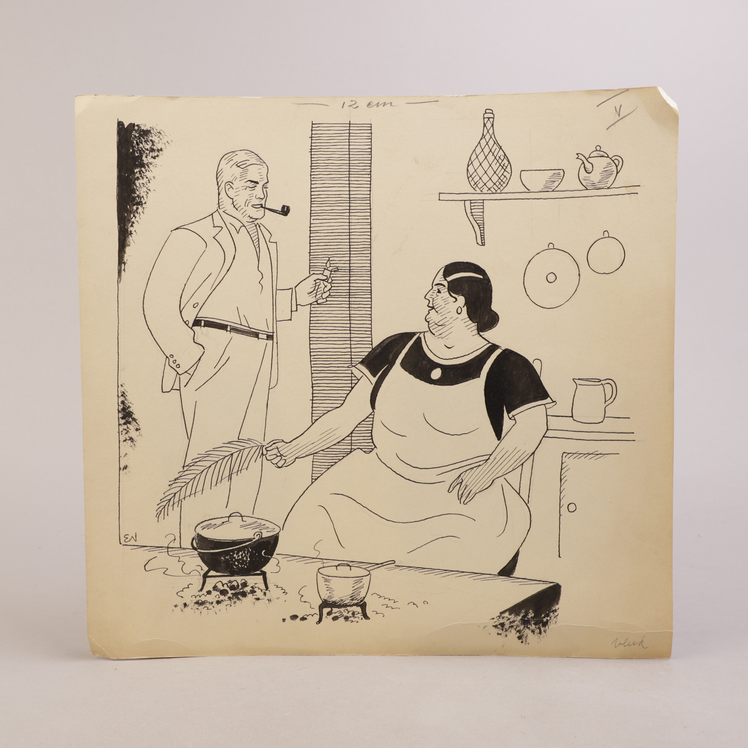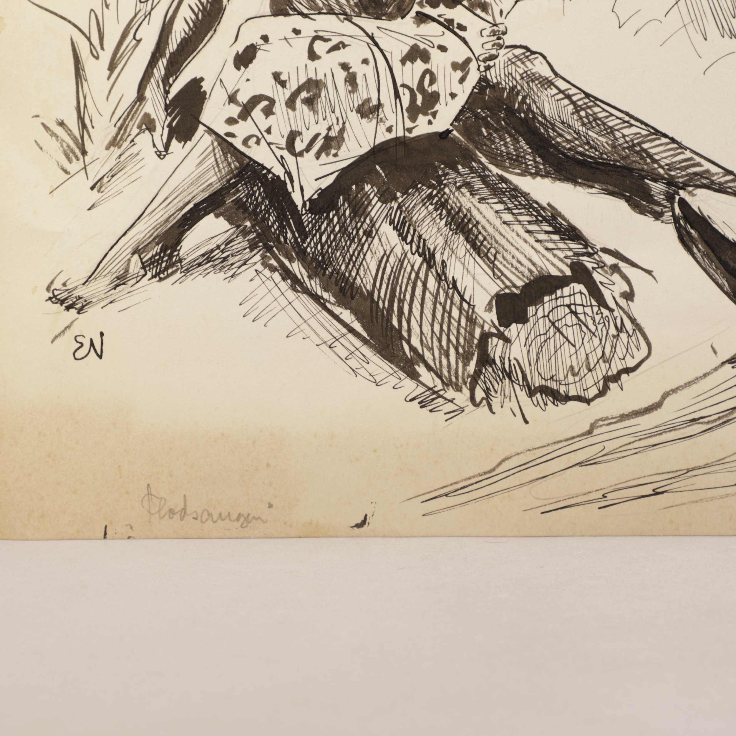 Penn, blyant og akvarell på papir.