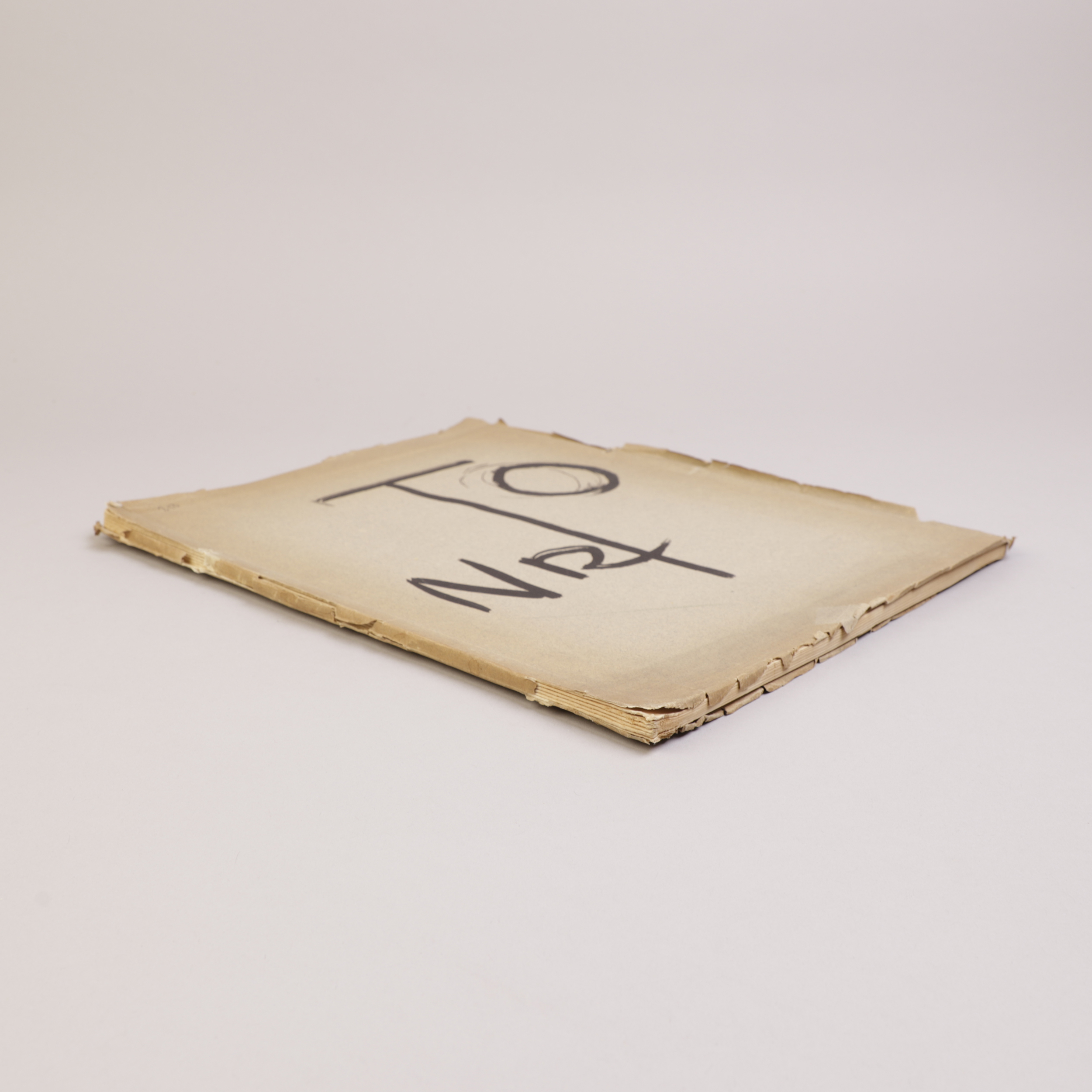 Omslag med slitasje.