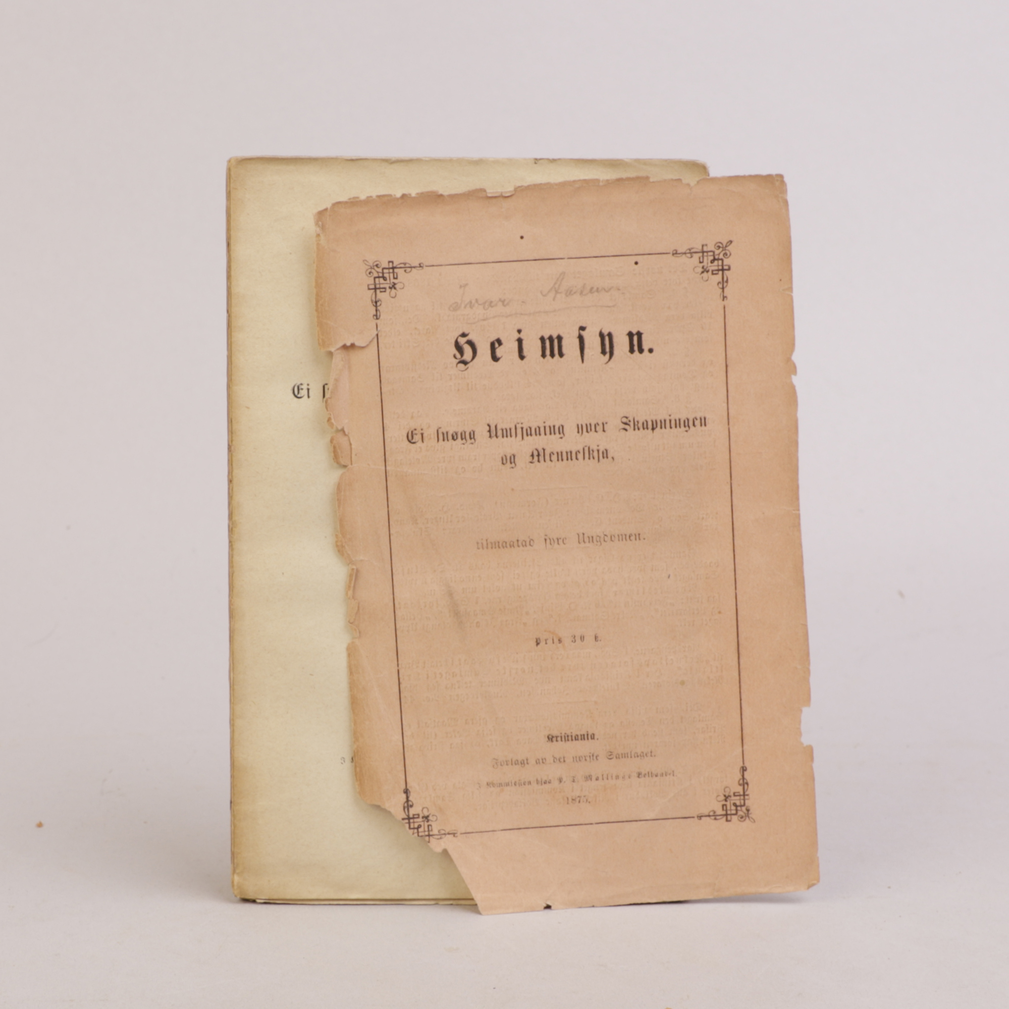 Kristiania: Forlagt av det norske Samlaget. I kommission hjaa P.T. Mallings Bokhandel, 1875. Originalt omslag.
