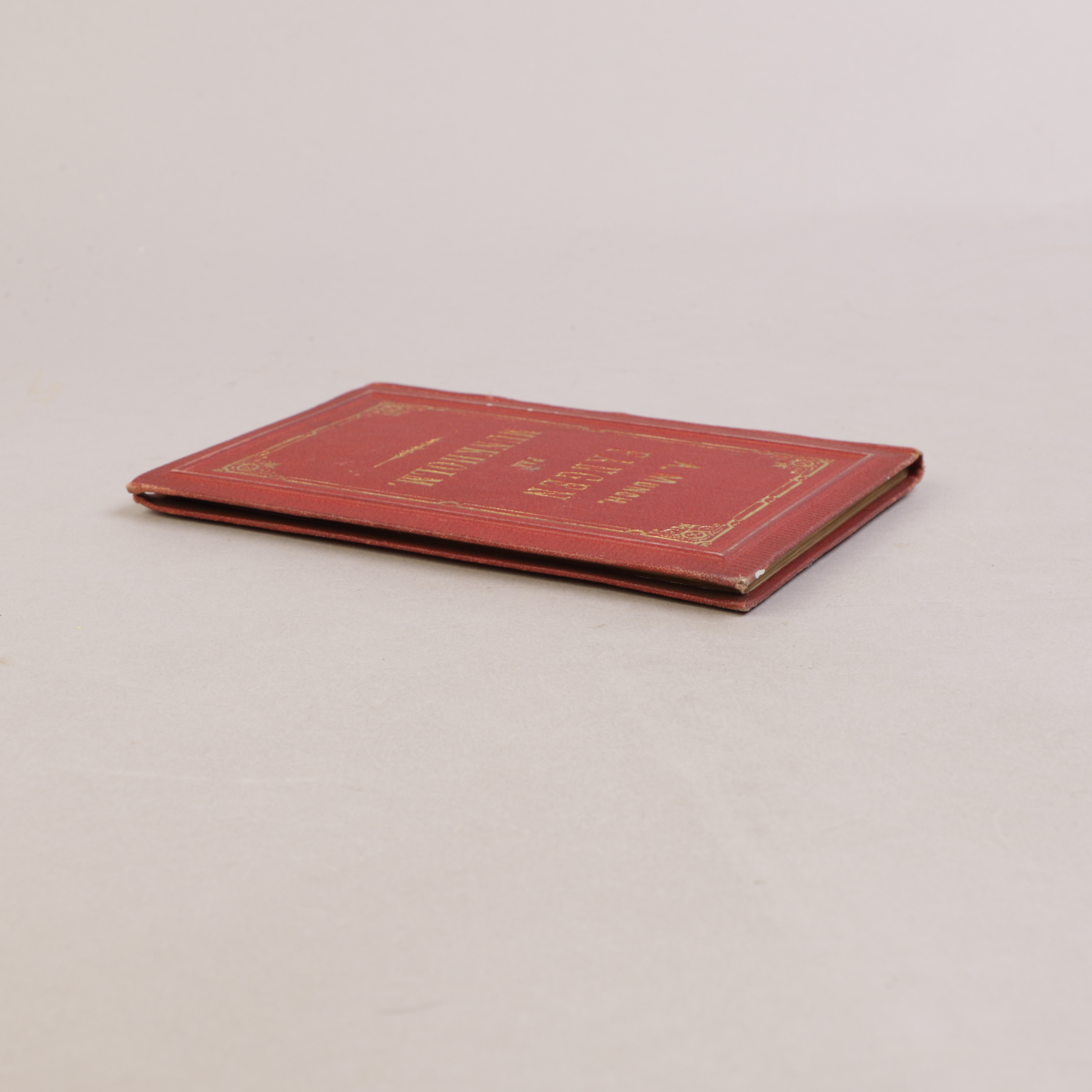 Meget svak fargeavskrapning på rygg. Ørliten plett på fordfekkel, for øvrig et attraktivt eksemplar av en sjelden bok.