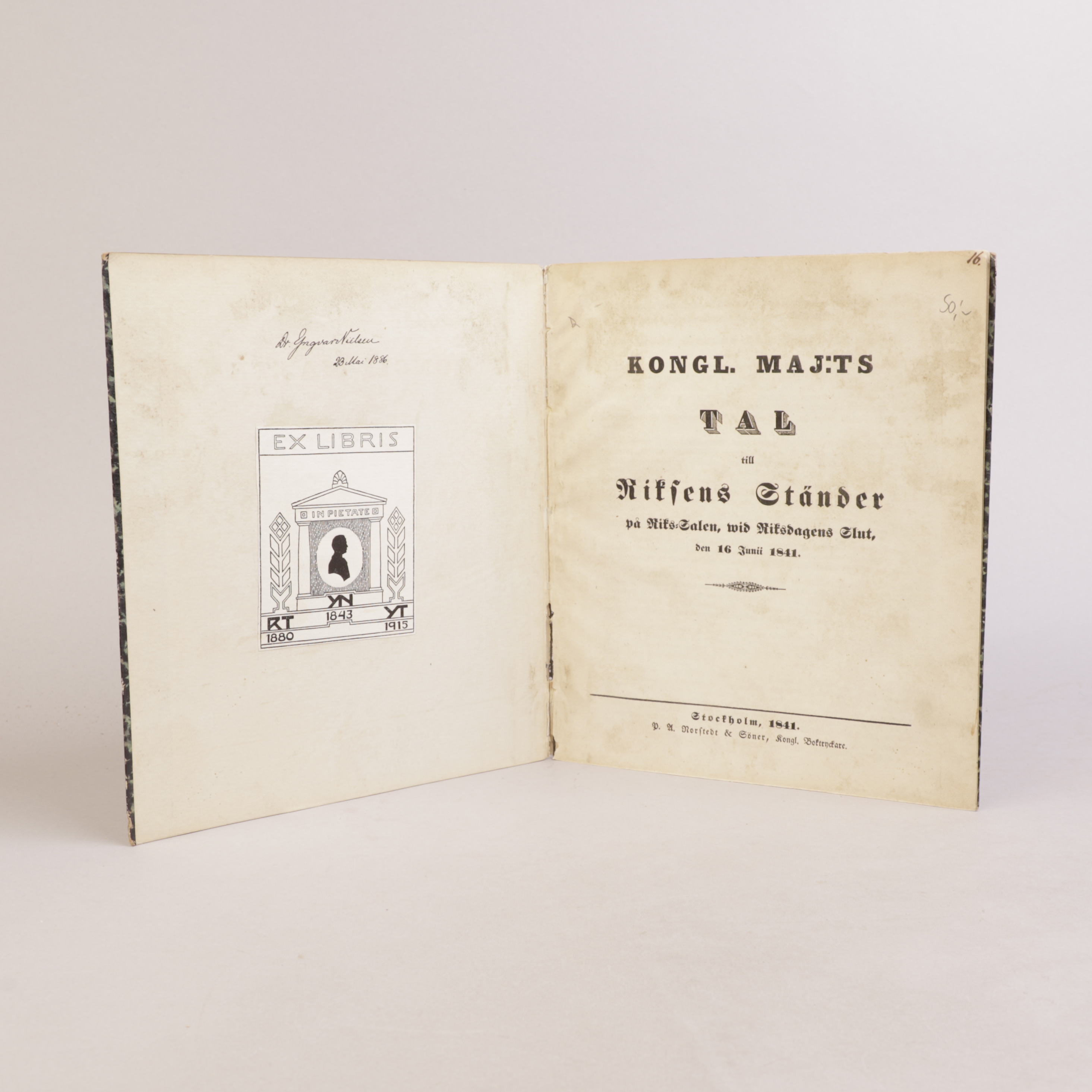 Yngvar Nielsens signatur, samt ex libris, på forsats.