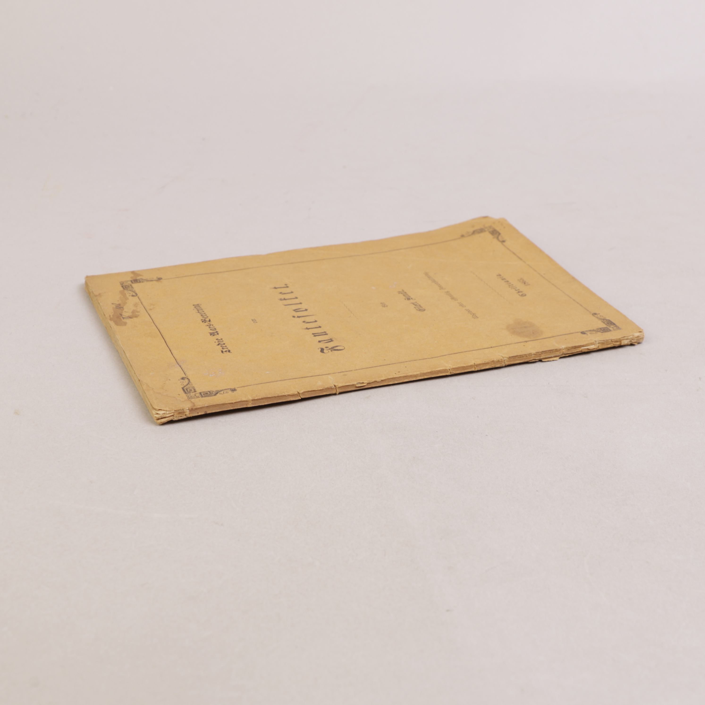 Noe slitasje på rygg, svake bretter og ørlite papirtap i nedre hjørne av fremre omslag.