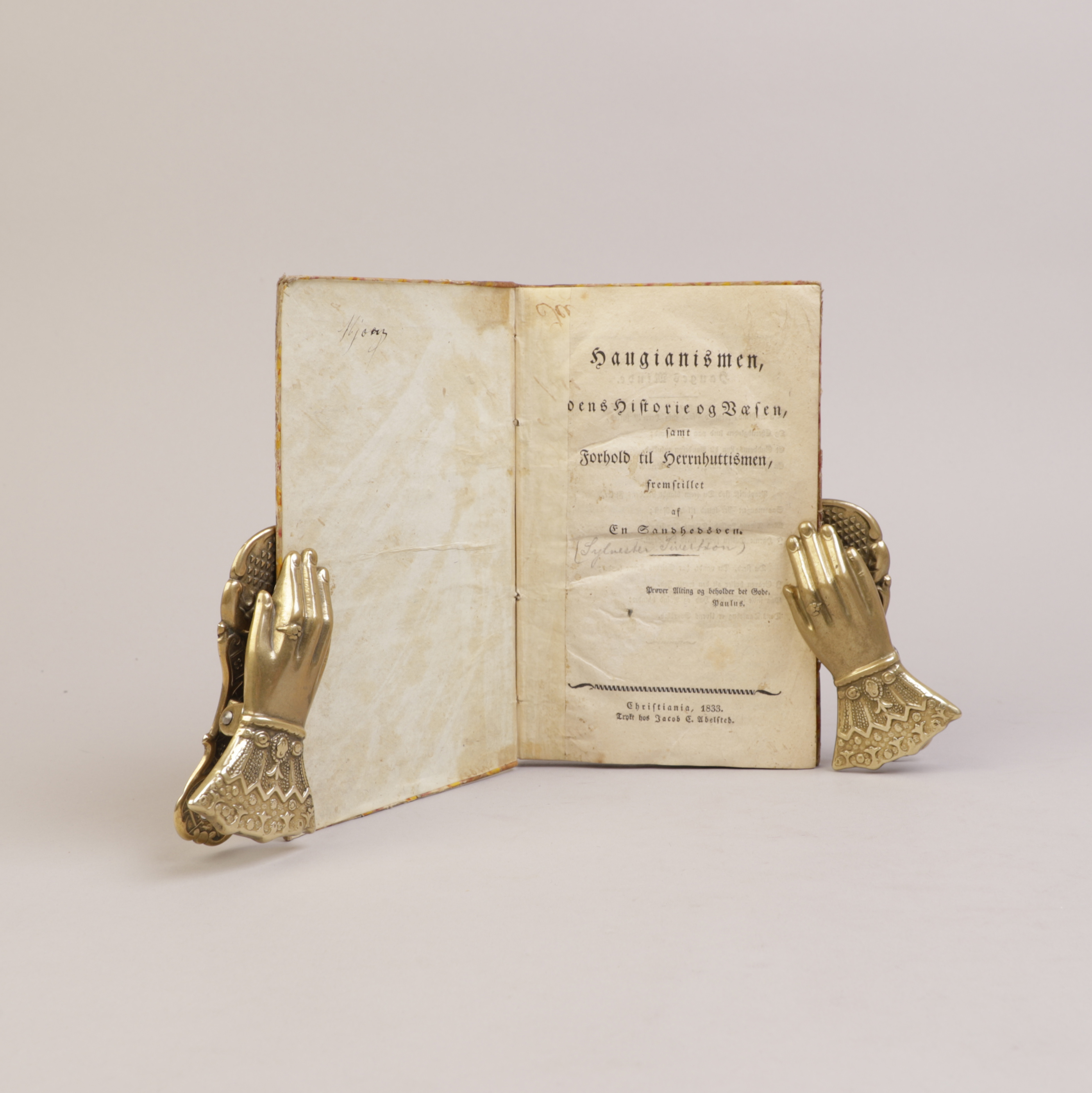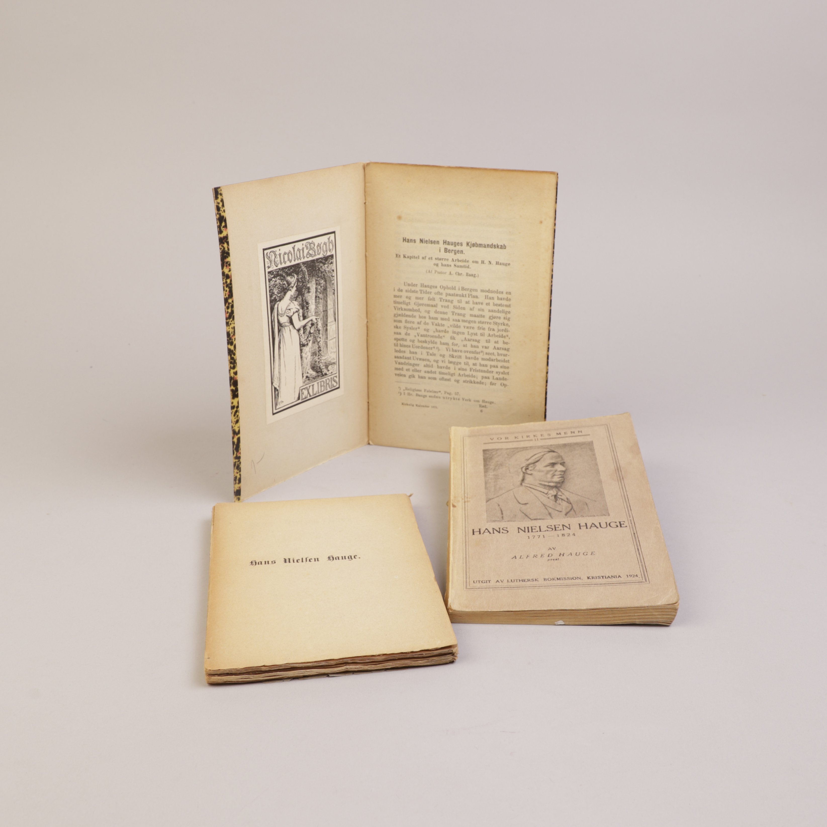 MEDFØLGER: 3 skrifter vedrørende Hauge. Olaf Røsts lille bok mangler det fremre omslaget.