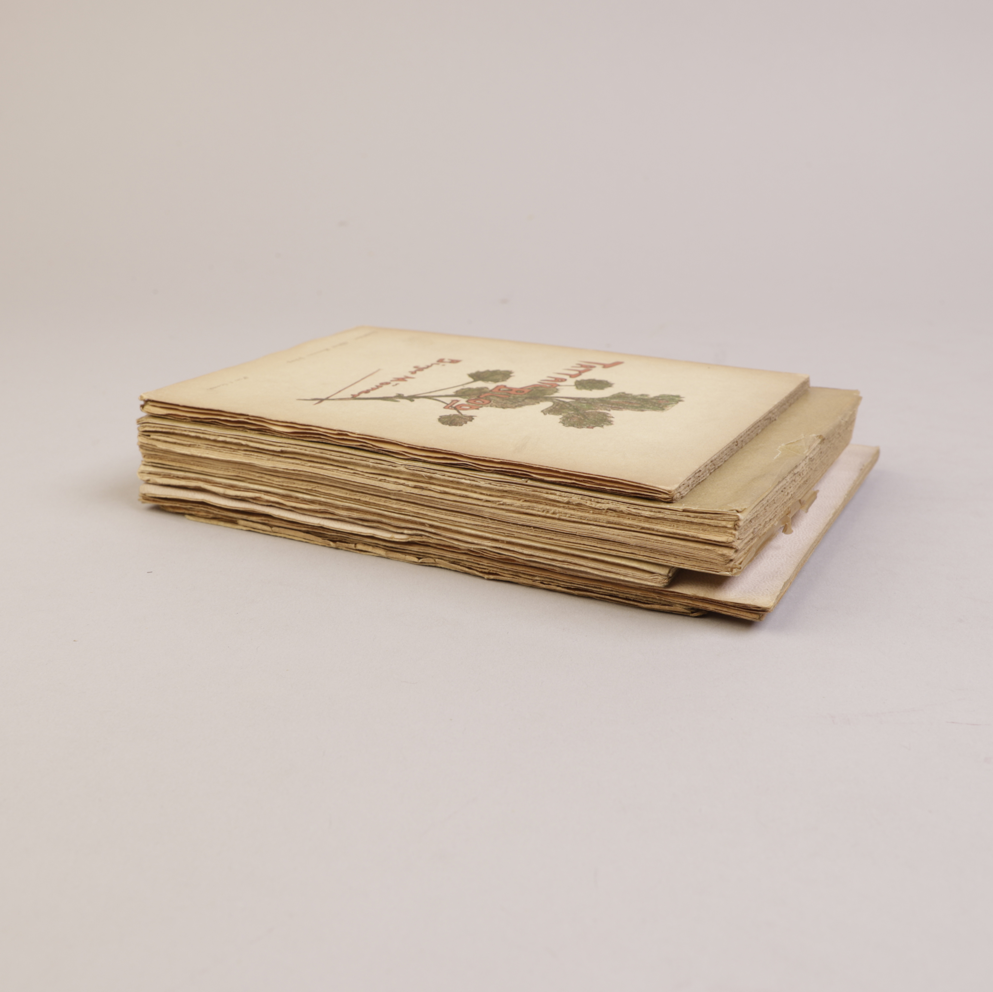 Slitasje. Nedre hjørner av omslag og siste 6 sider avrevet (berører ikke tekst).