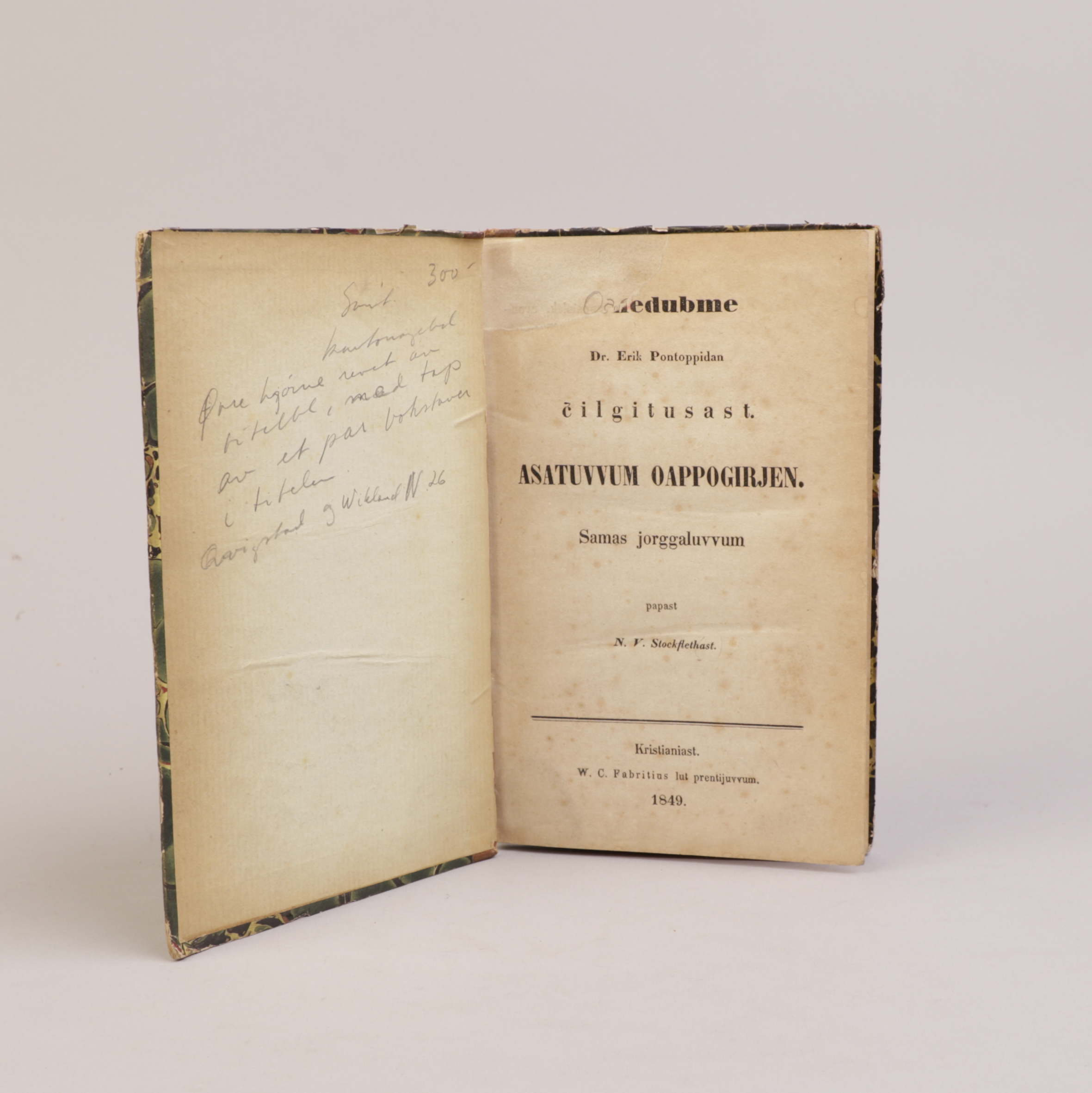Kristiania: Fabritius, 1849. 8vo. 175, [1] sider. Samtidig skinnryggbind.