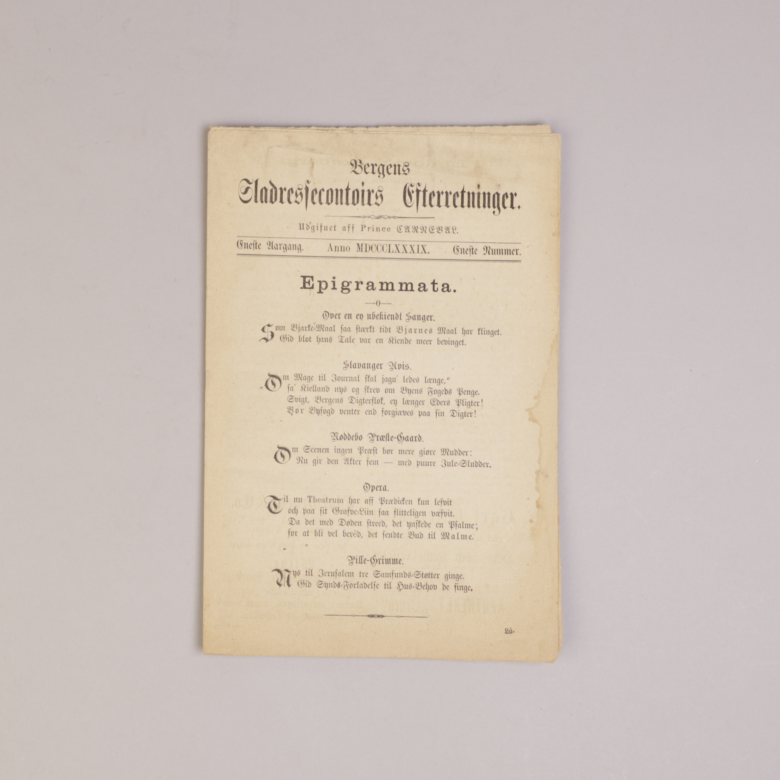 Eneste Aargang. Eneste Nummer.