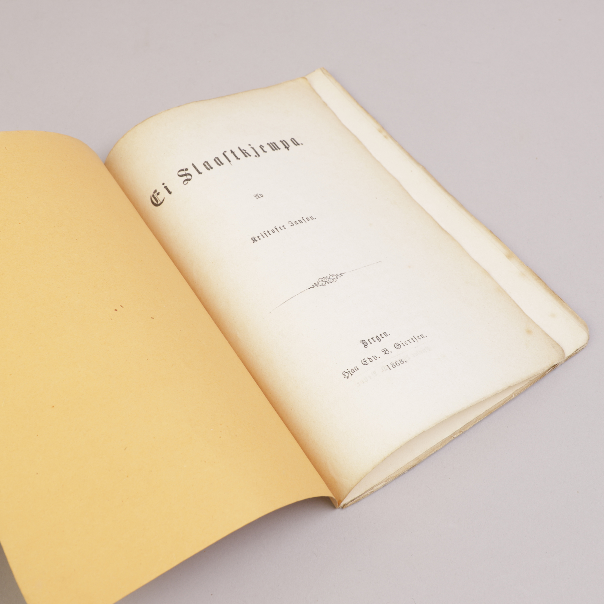 Bergen: Giertsen, 1868. Liten 8vo. Originalt omslag. Usprettet.