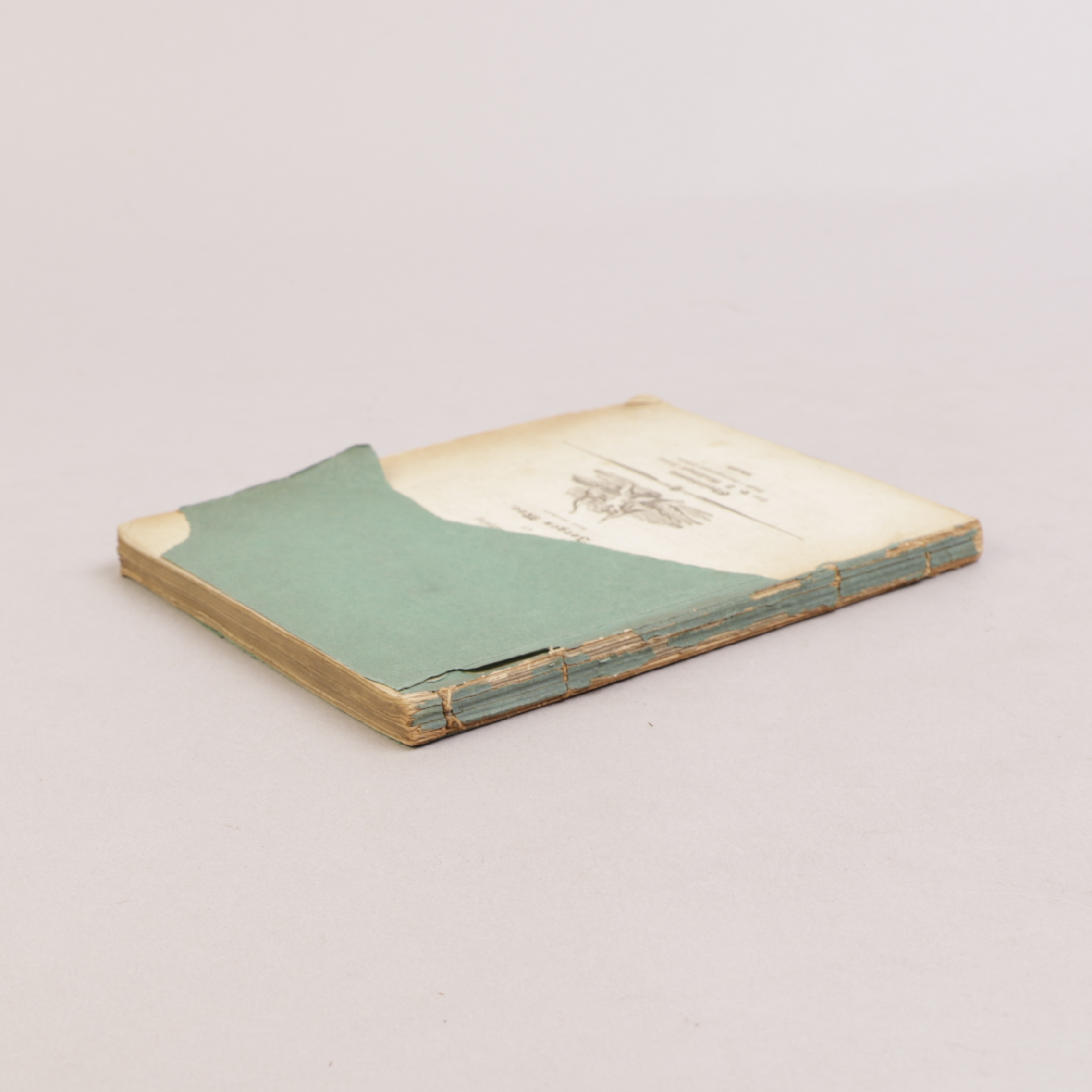 Fremre omslag med papirtap, bakre med noe rifter. Et fast eksemplar med god materie.
