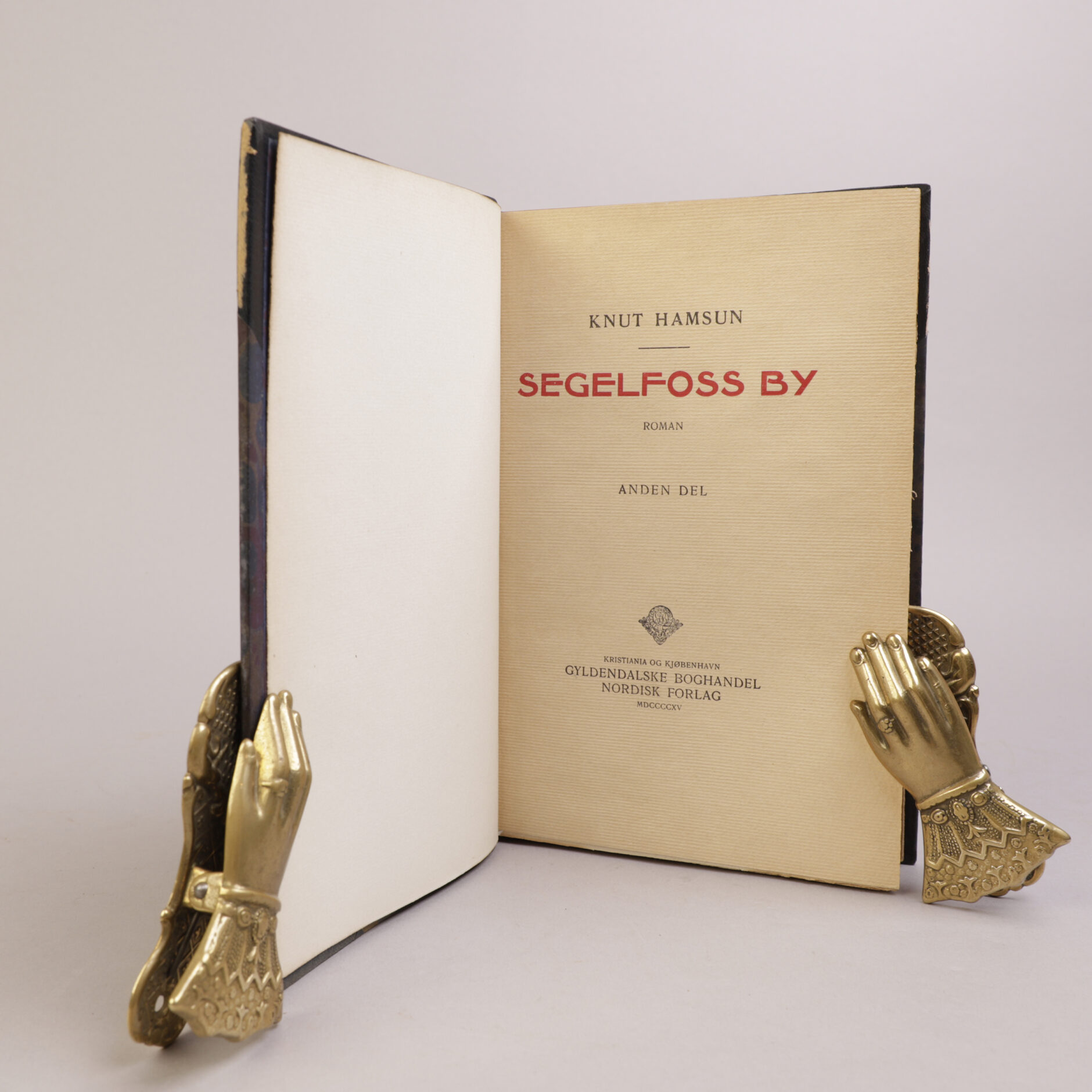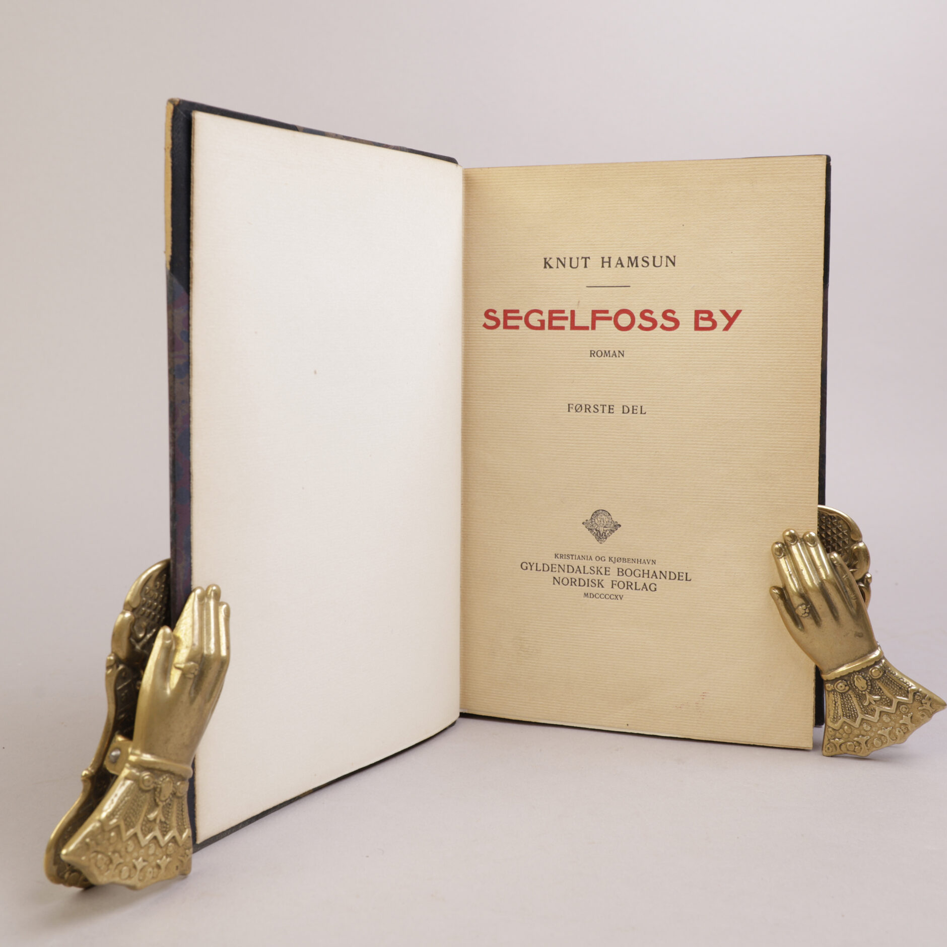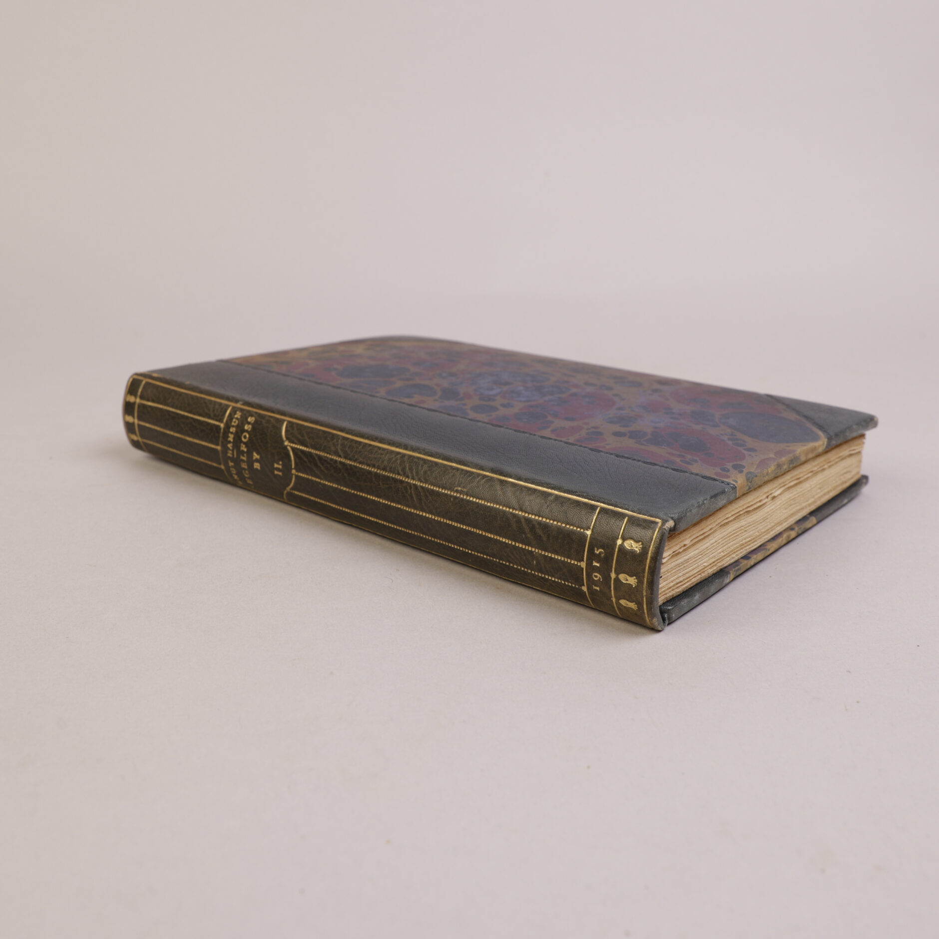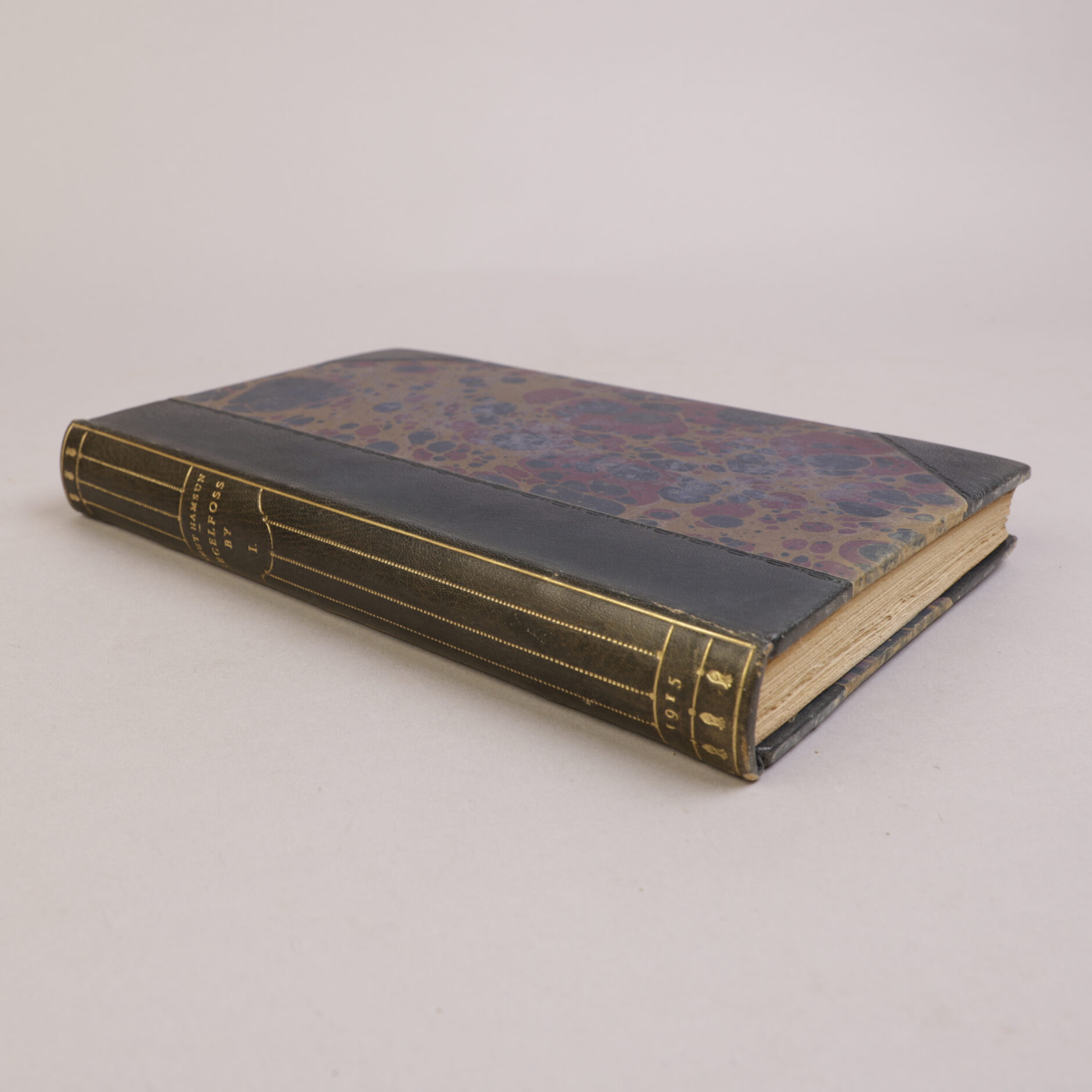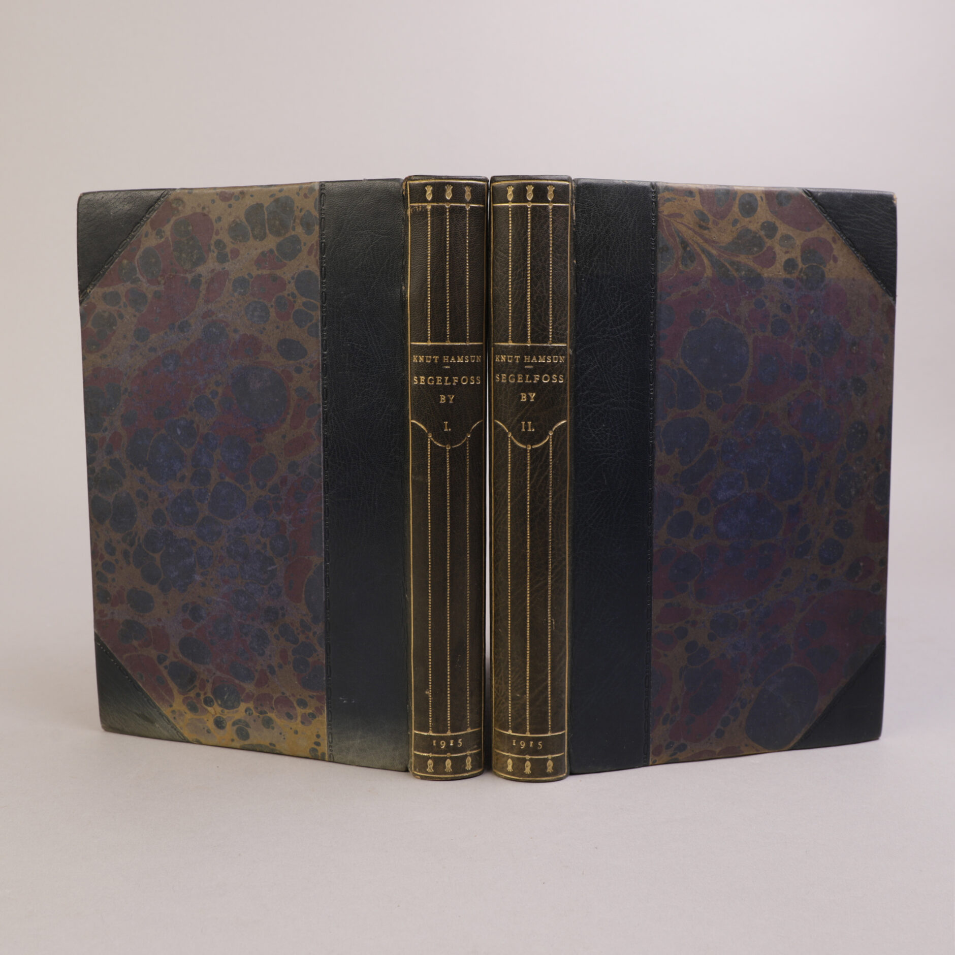 Kristiania: Gyldendal, 1915. Store 8vo. Halvskinnbind [Anker Kyster]. Bundet med alle omslag. Topp gullsnitt, for øvrig ubeskåret.