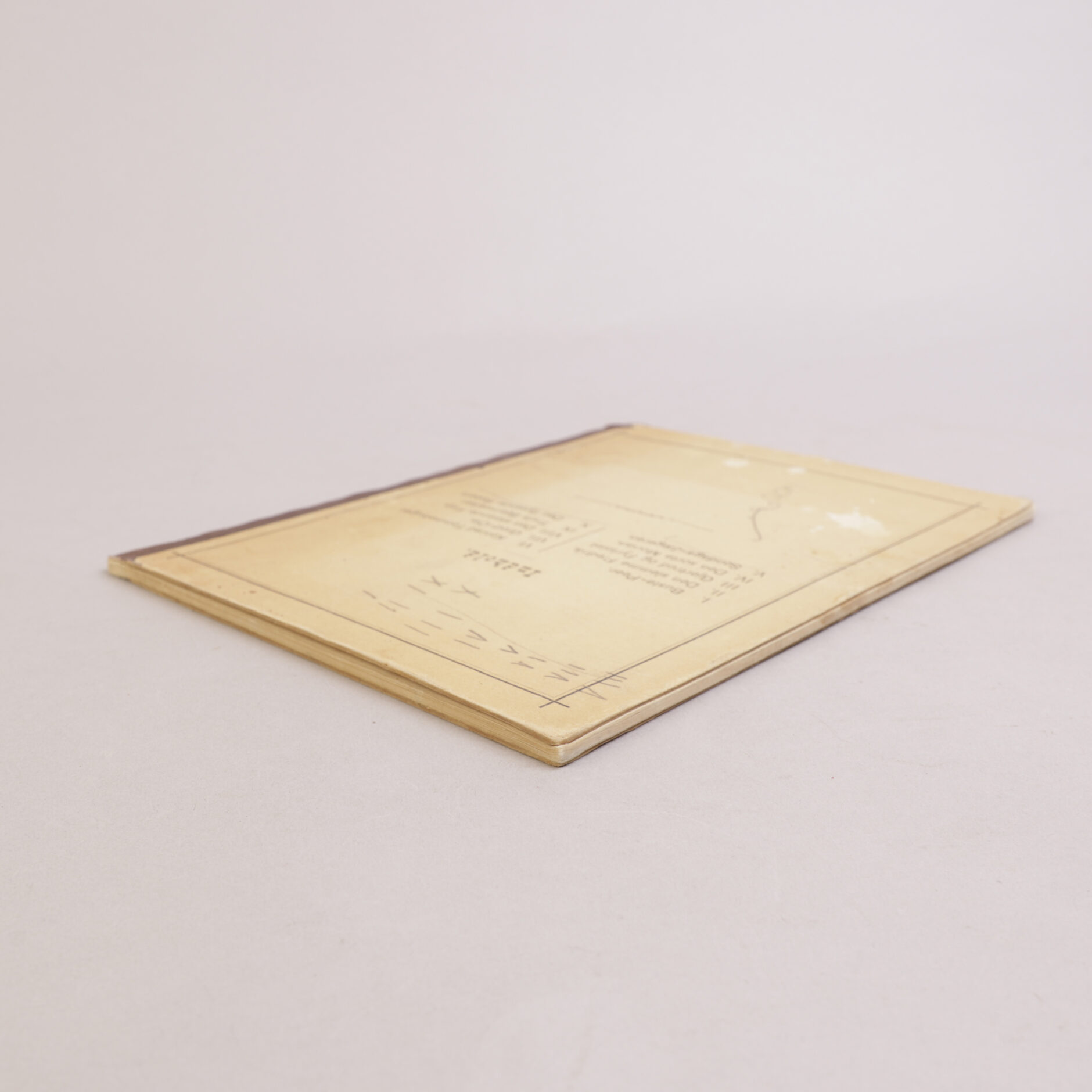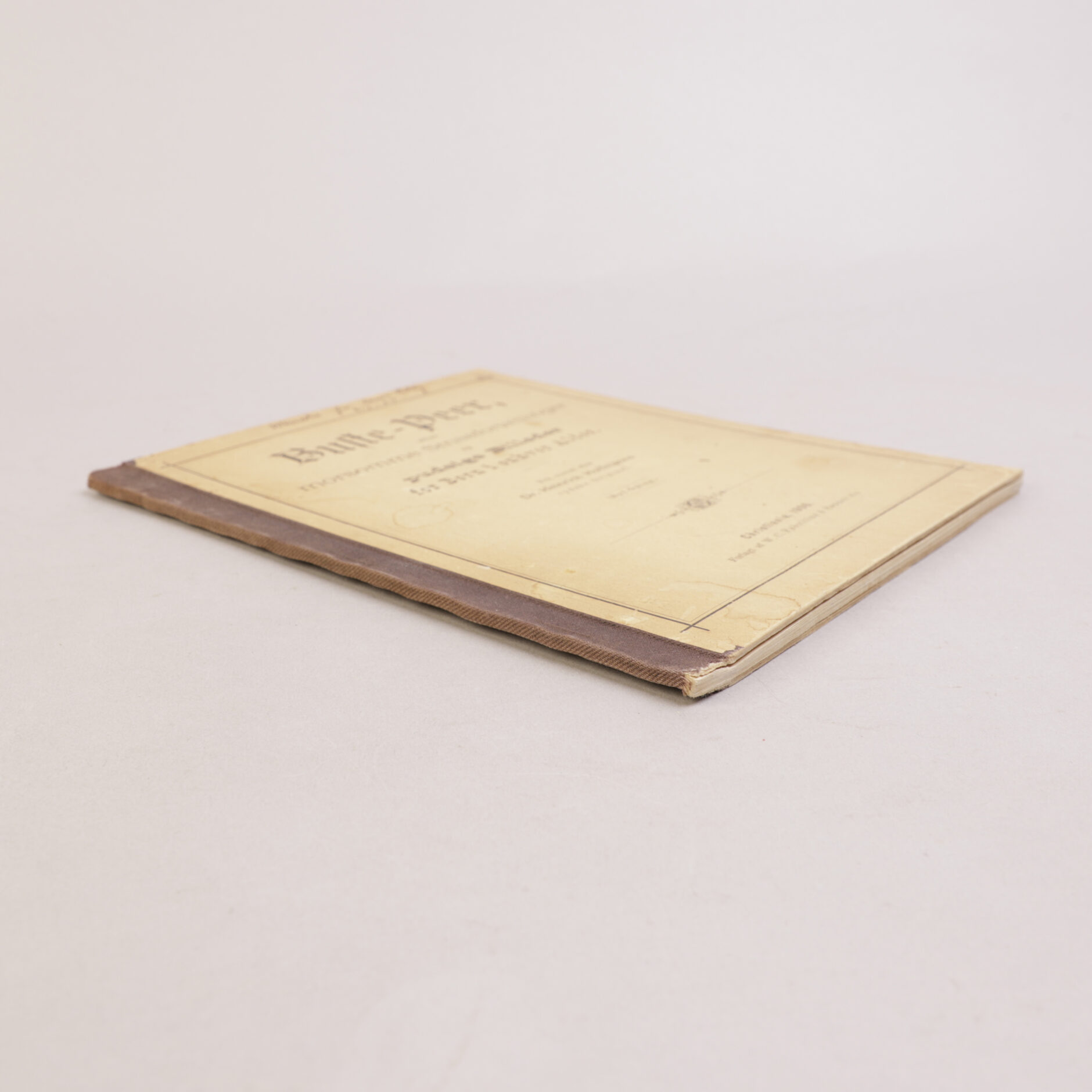 Bindet noe flekket. Blyantmerker på bakre omslag. Påskrevet hilsen. Materien for det meste ren.