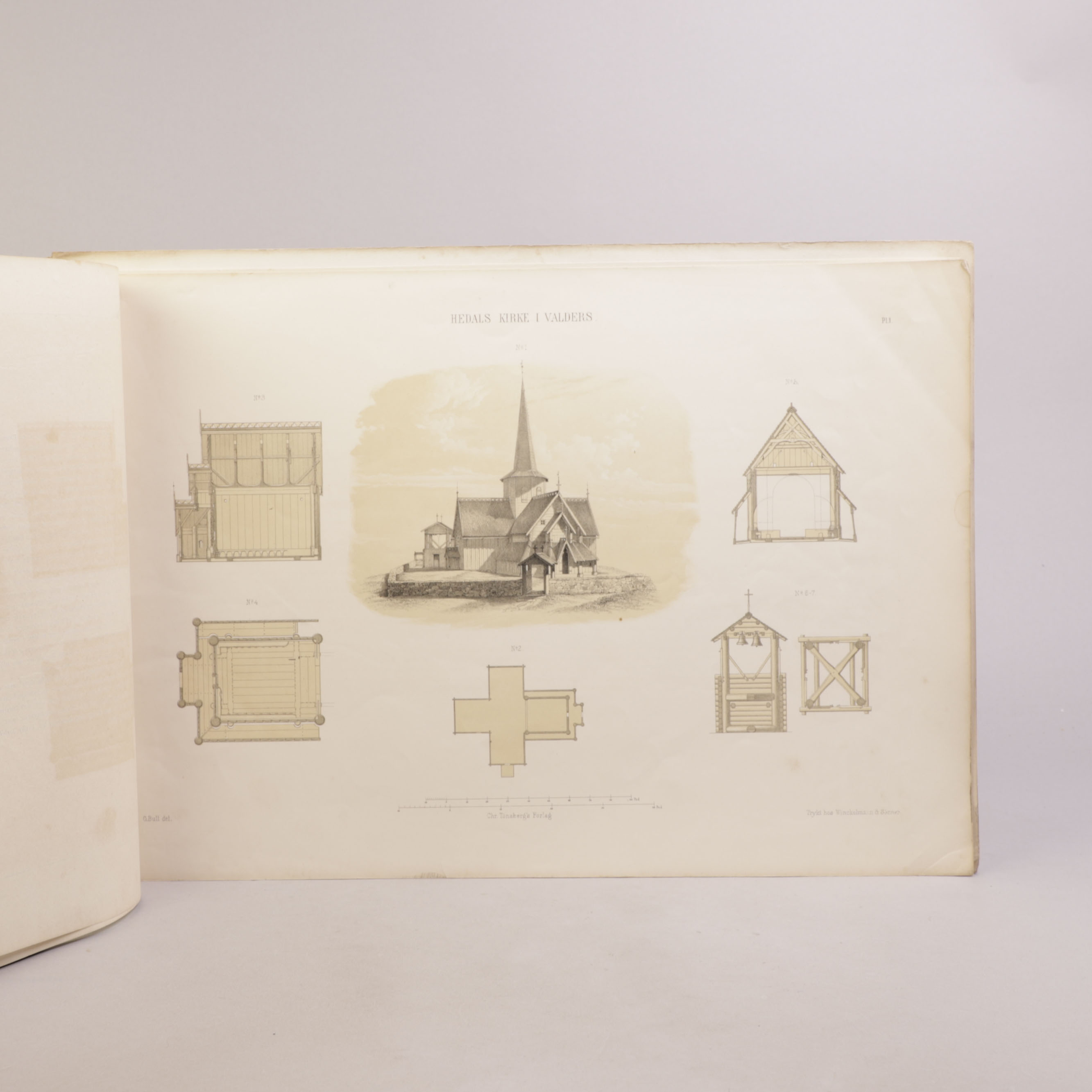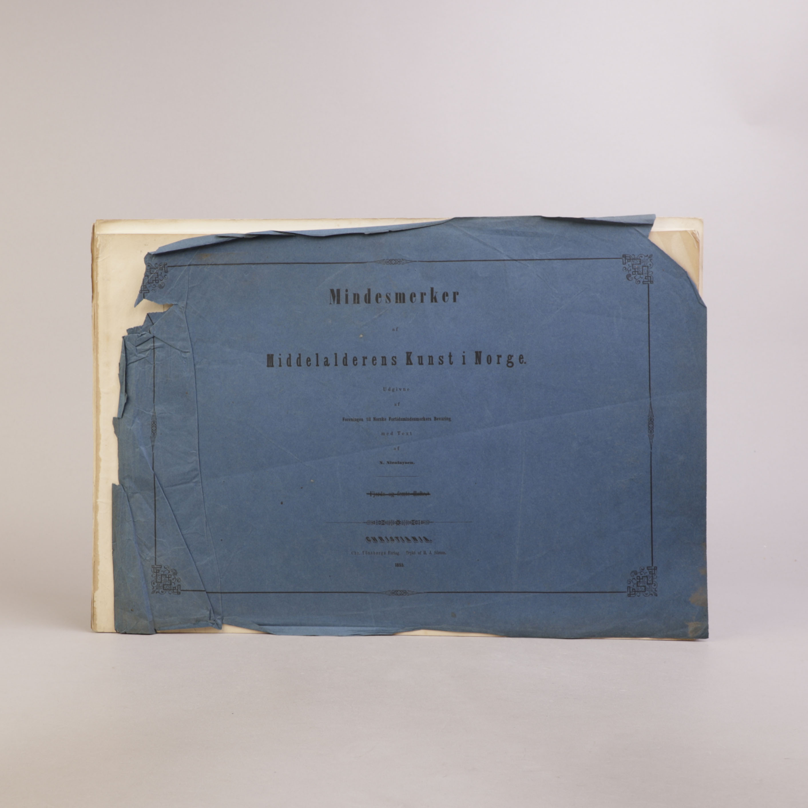 Christiania: Chr. Tønsberg, 1855. Liggende folio (46x33cm]. Komplett 10 litografier. Originalt omslag (til fjerde og femte hefte, overstrøket).