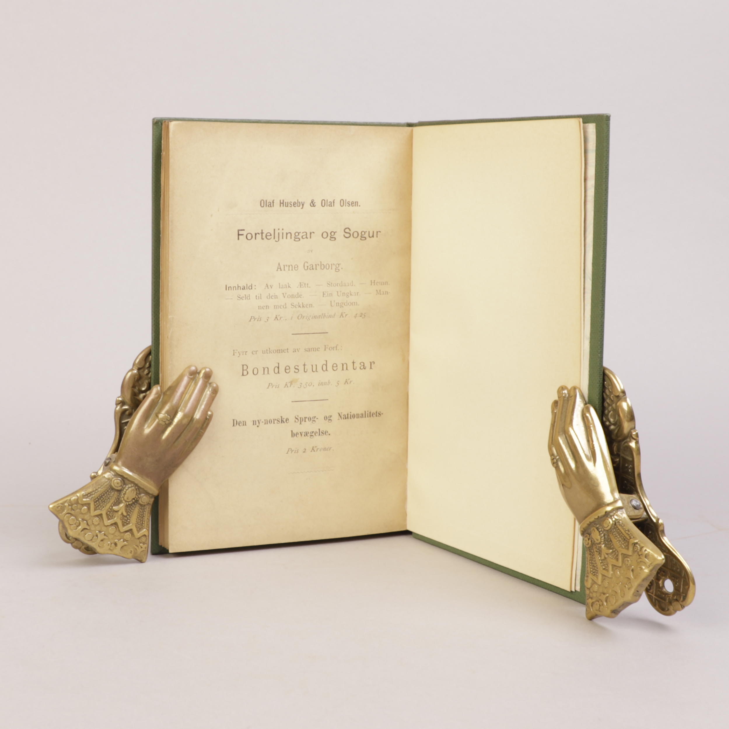 Norske Førsteutgaver: Omslagsvariant B, variantomslag fra “Olaf Huseby & Olaf Olsen”, overstemplet med rødt: “Bibliothek for de tusen Hjem, Fagerstrand pr. Høvik”. Forlegger Cammermeyer er IKKE overklebet på tittelblad.