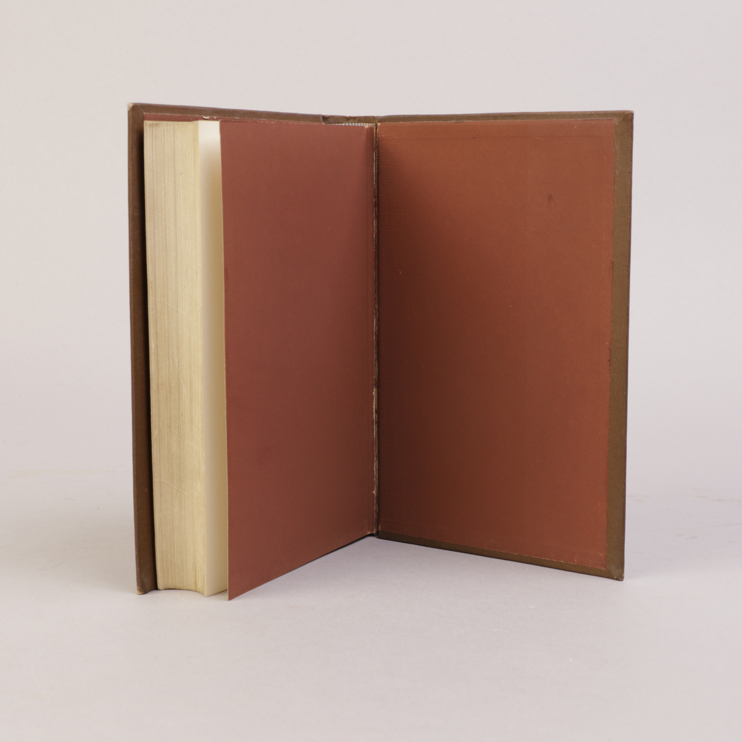 Et par meget svake pletter på fordekkel. Ex libris på forsats. Svake brister i forsatspapiret i indre falser, dog fast. For øvrig et frikst bind på denne boken som kan være vrien å finne i velholdte forlagsbind.