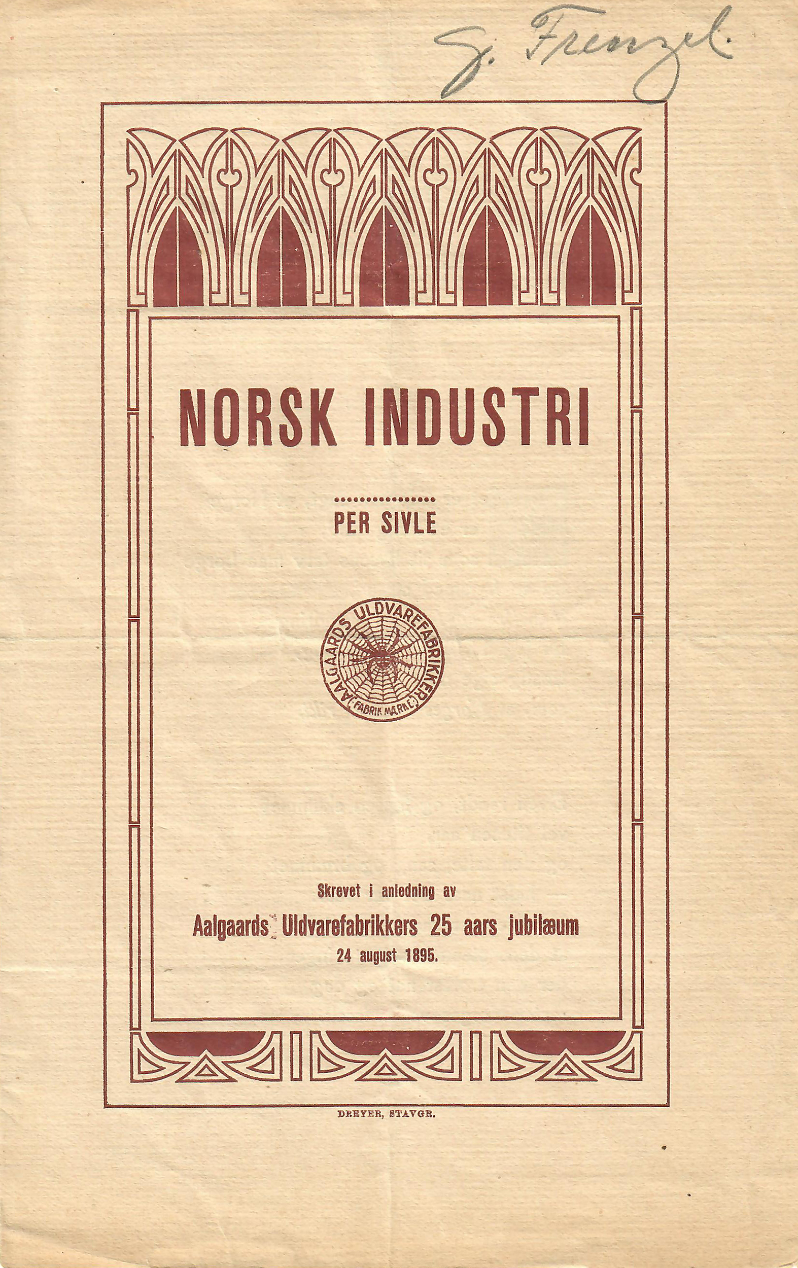 Norsk Industri. Skrevet i anledning av Aalgaards Uldvarefabrikkers 25 aars jubilæum 1895.