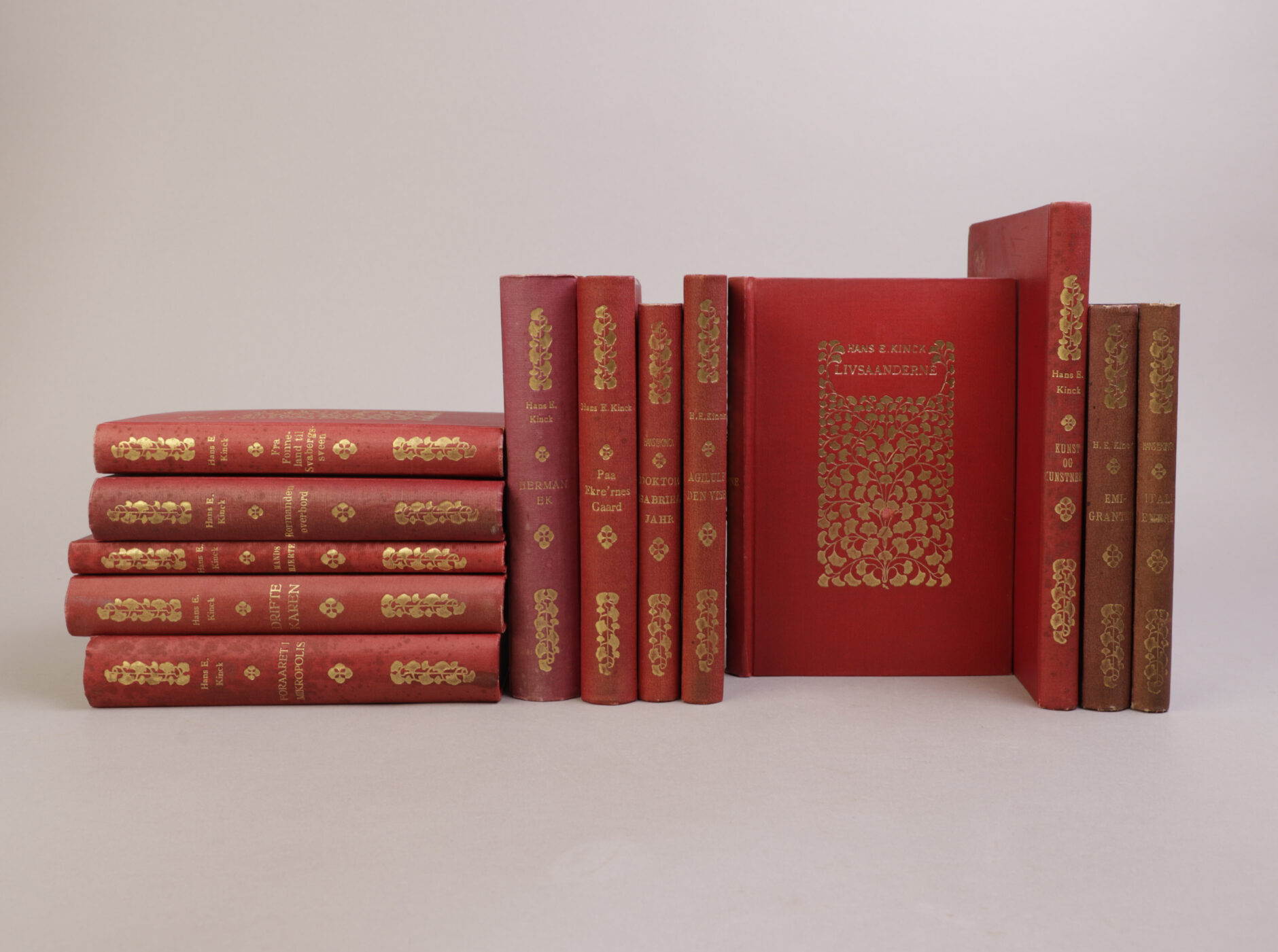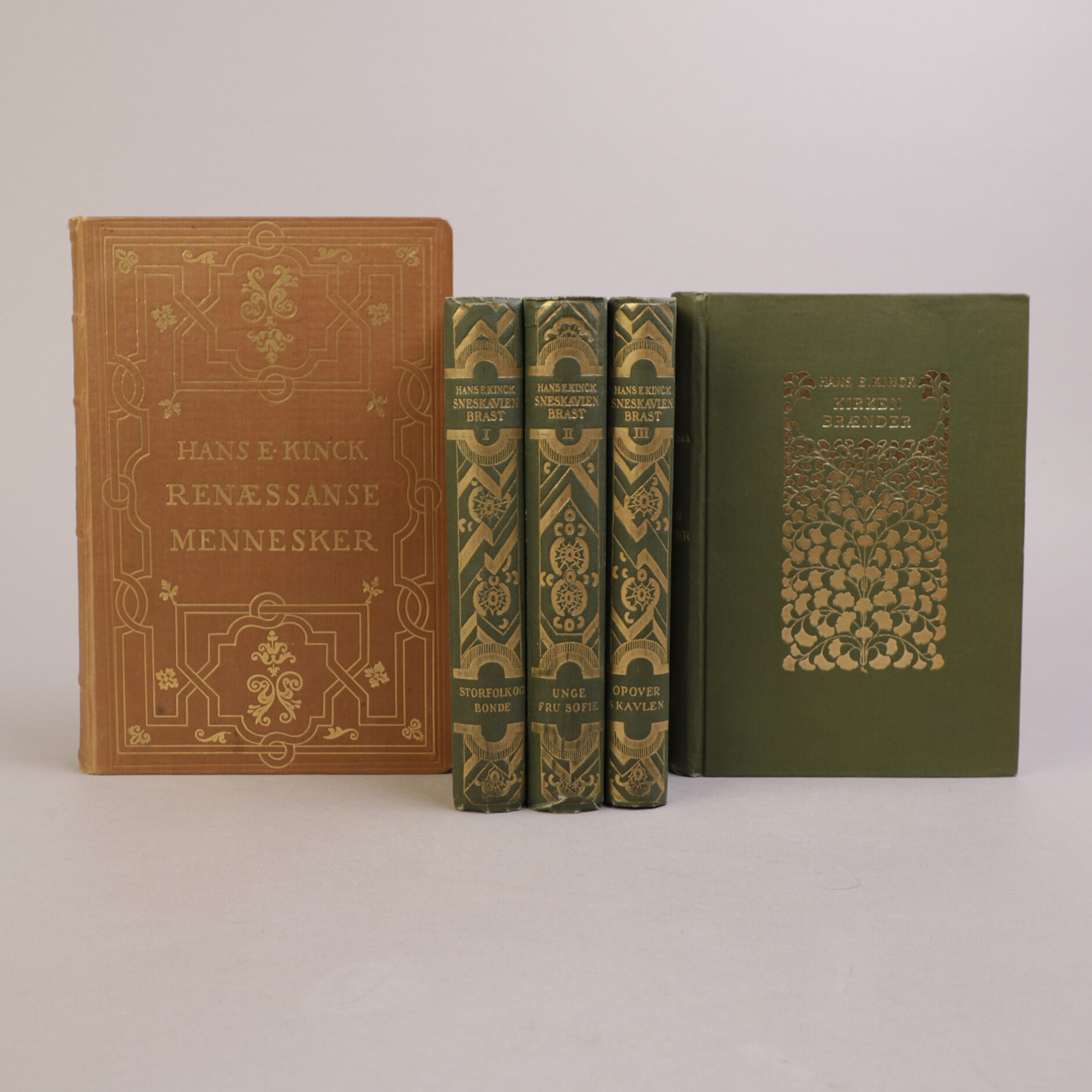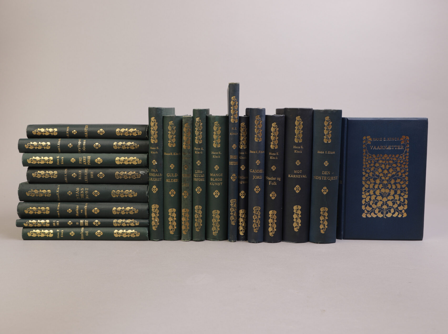 Kristiania: Aschehoug, 1918-19. Forlagsbind, grønne halvsjirting. Et godt sett.