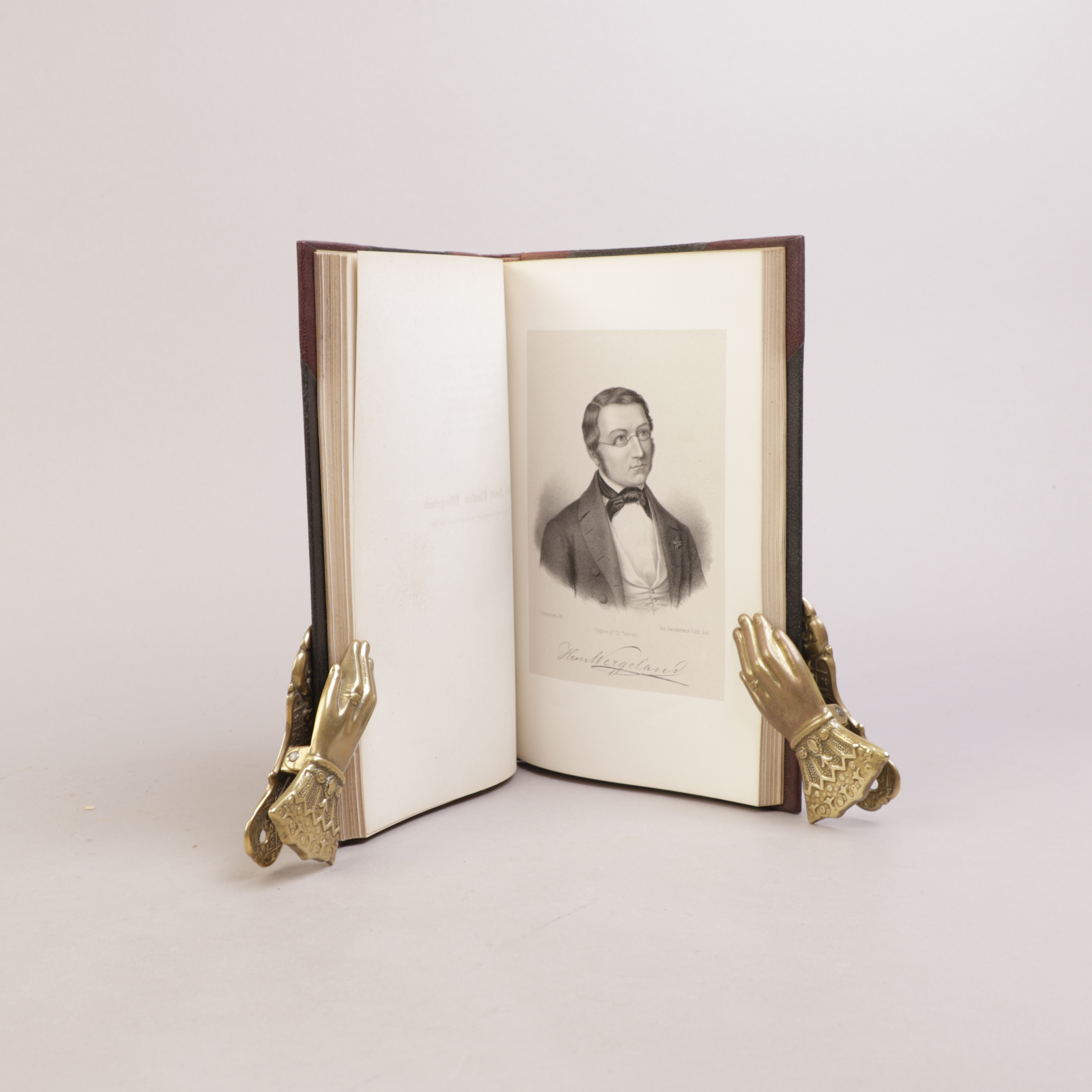Litograferte portretter av samtlige diktere som er representert med dikt: Bjerregaard, H. Foss, M. C. Hansen, P. A. Jensen, M. B. Landstad, Jørgen Moe, C. Monsen, A. Munch, C. N. Schwach, S. Sivertson, Welhaven, Wergeland.