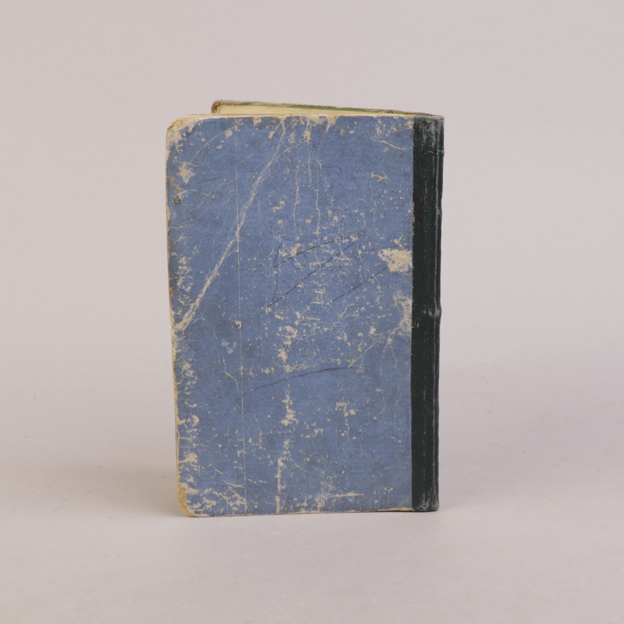Overflate- og kantslitasje på bind. Meget lite papirtap i nedre kant av tittelblad. Noe fingermerker. Siste bokstav ”ø” mangler.
