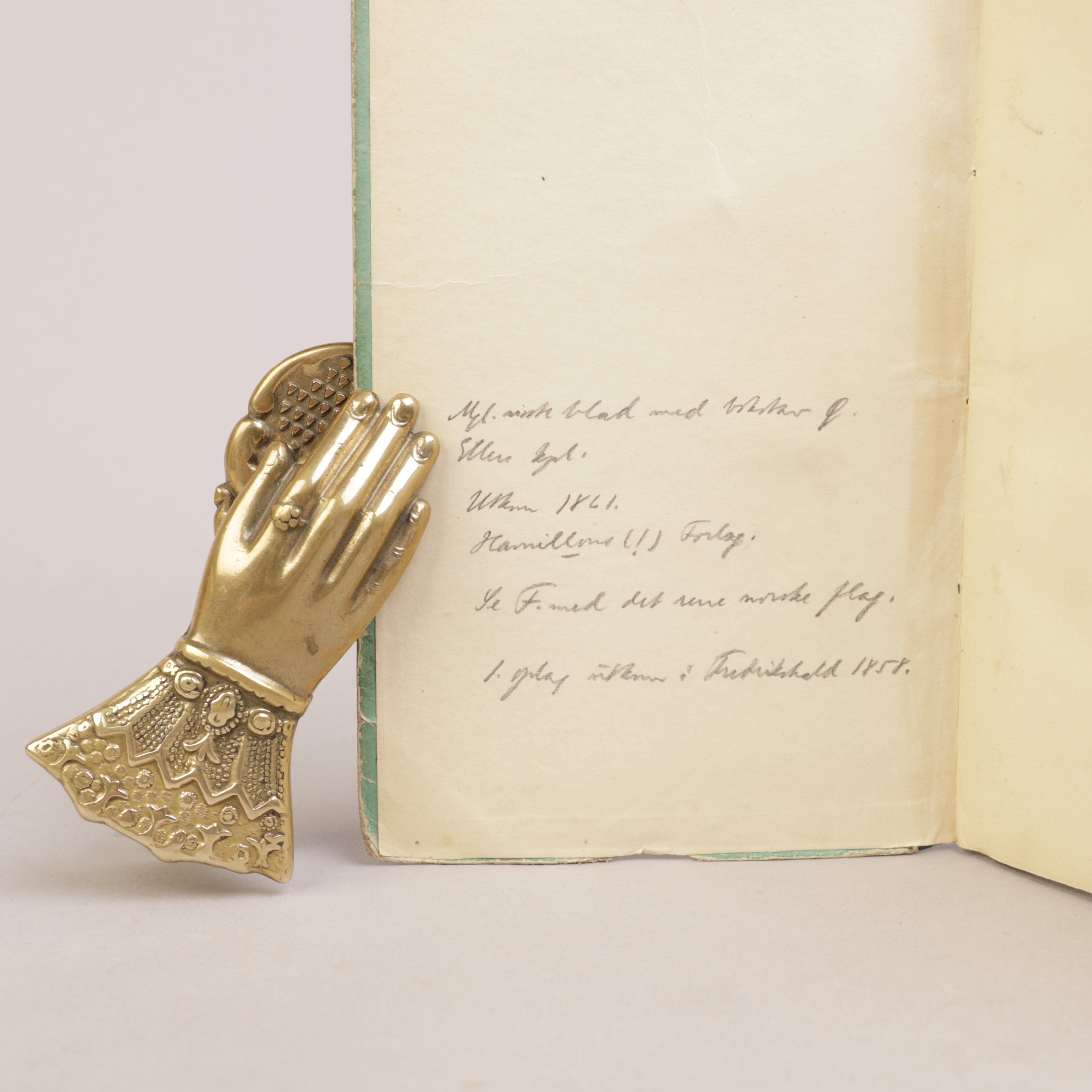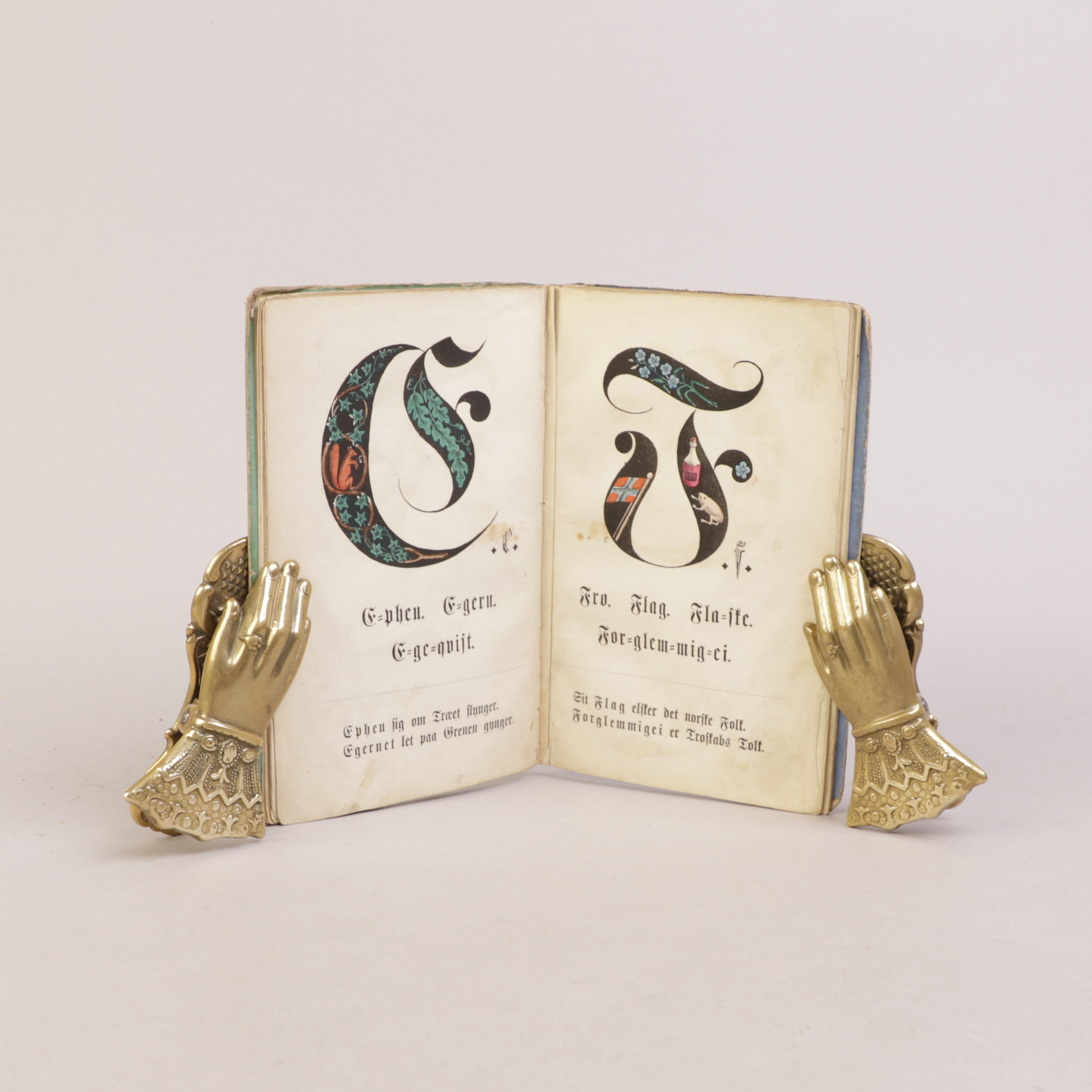 Frederikshald: W. Hamiltons, [1861]. 8vo. 27 [av 28] upaginerte sider. Nær samtidig sjirtingryggbind med originalt omslag oppklebet på dekler. Samtidig håndkolorert.