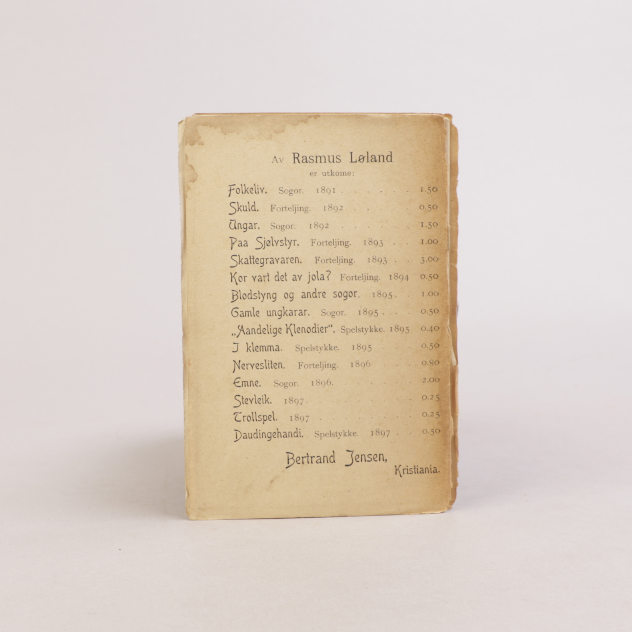 Oslo: Bertrand Jensen, 1897. Liten 8vo. Originalt omslag.
