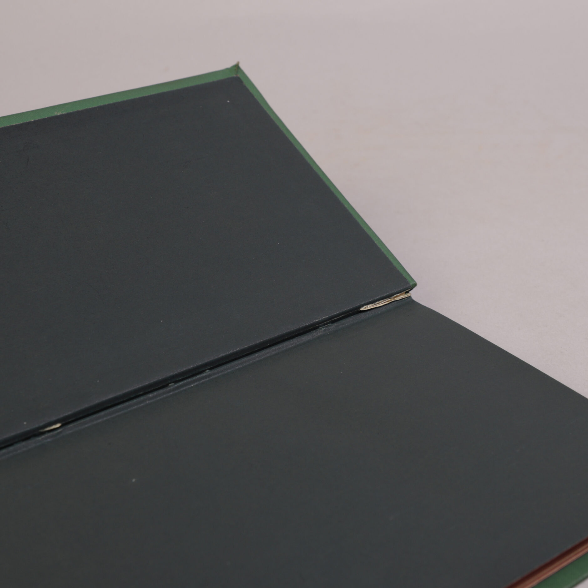 Kun mindre fargeavskrapning langs bindets ytterkanter. For øvrig et meget velholdt eksemplar.