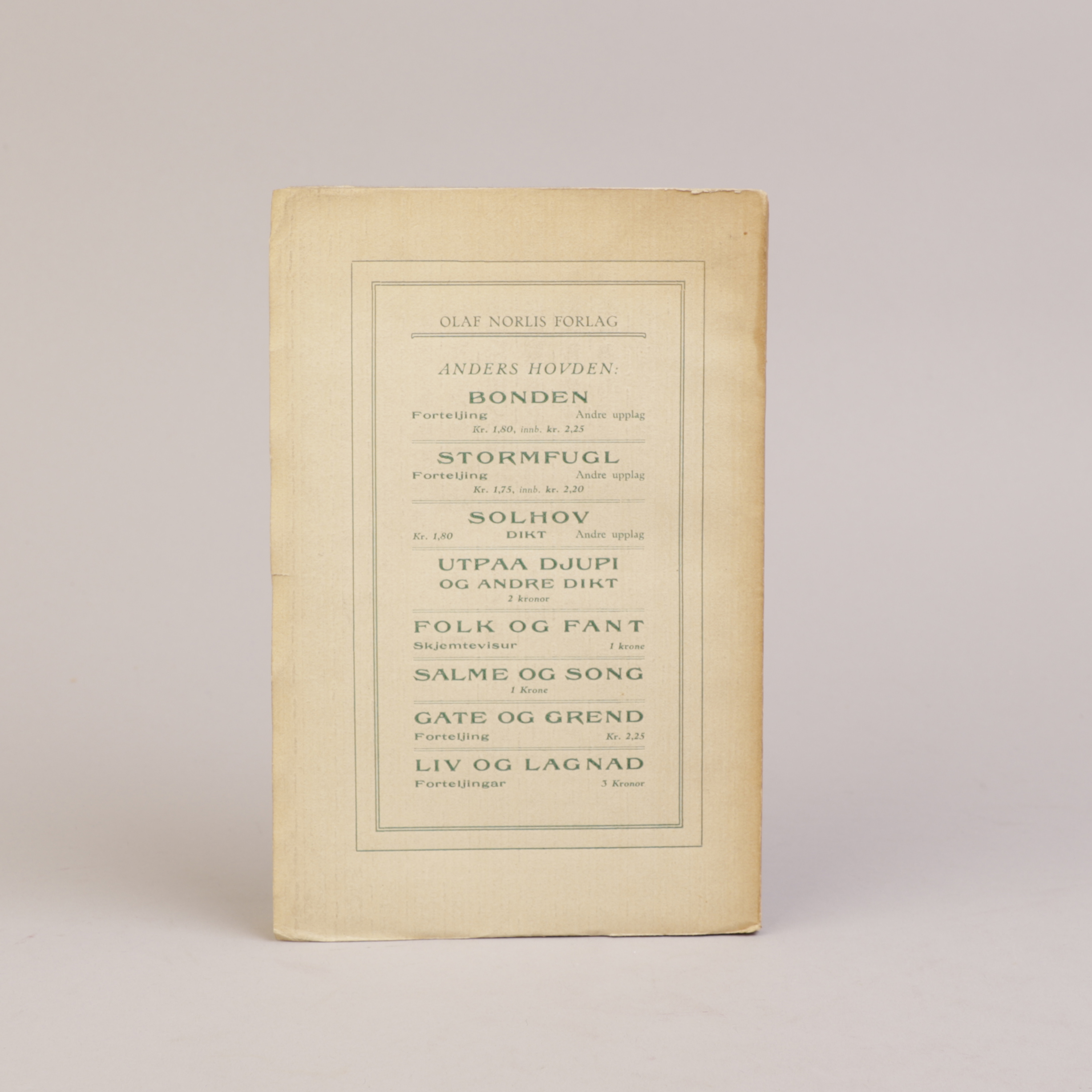 Kristiania: Olaf Norlis Forlag, 1911. Originalt omslag.